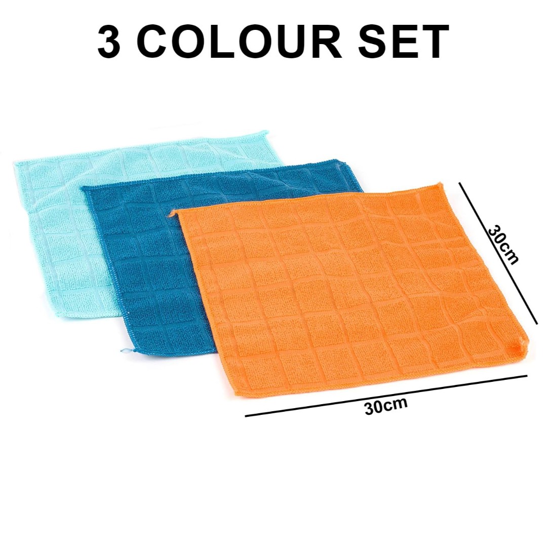 Convenient 30x30cm Size & Multi-Color Set – Comes in a 3-color set for easy task separation and hygiene.