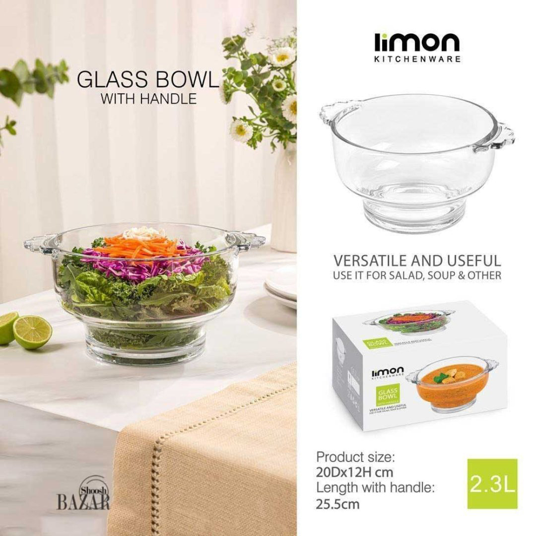 Elegant Multi-Purpose Design - Features a sophisticated clear glass construction with sturdy side handles, perfect for serving salads, desserts, soups, or appetizers with style and functionality