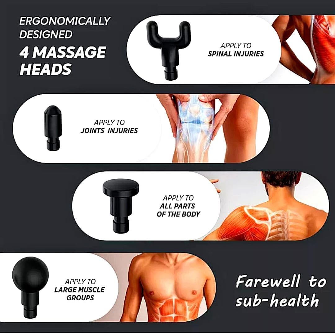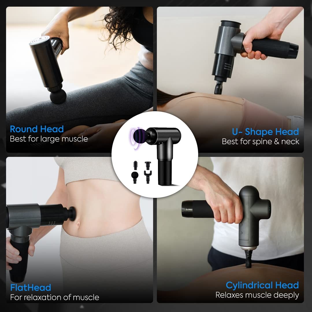 Interchangeable Massage Heads – Comes with 4 unique attachments to target different muscle groups and provide customized massage experiences for full-body relief.