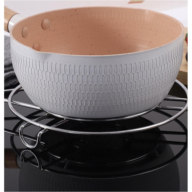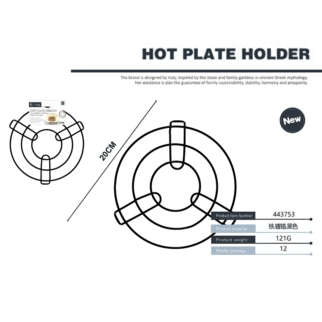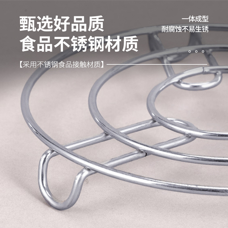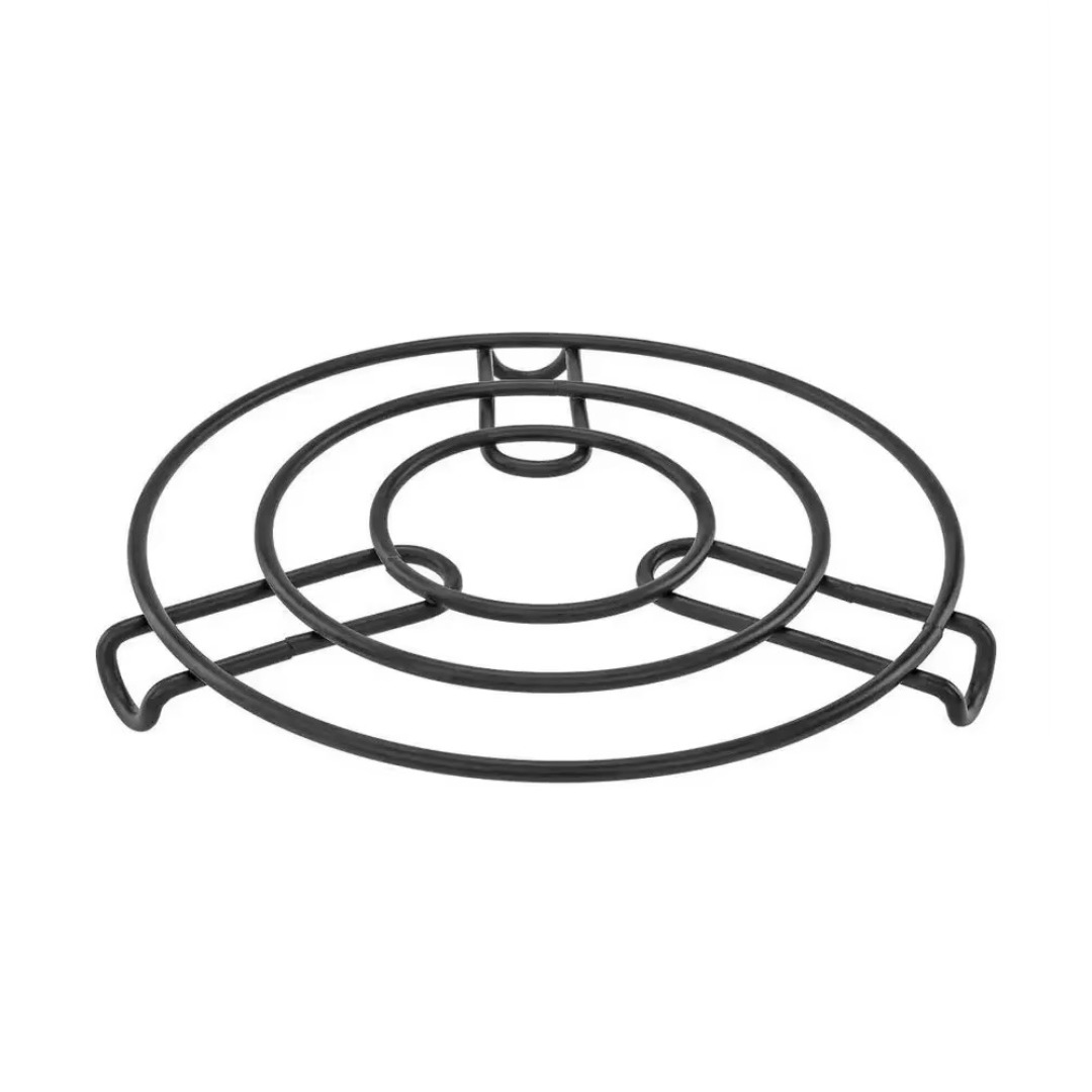 Versatile Hot Plate Holder: This product is a circular metal stand designed to hold hot plates, pots, or steamers securely, preventing heat from transferring to the surface below.
