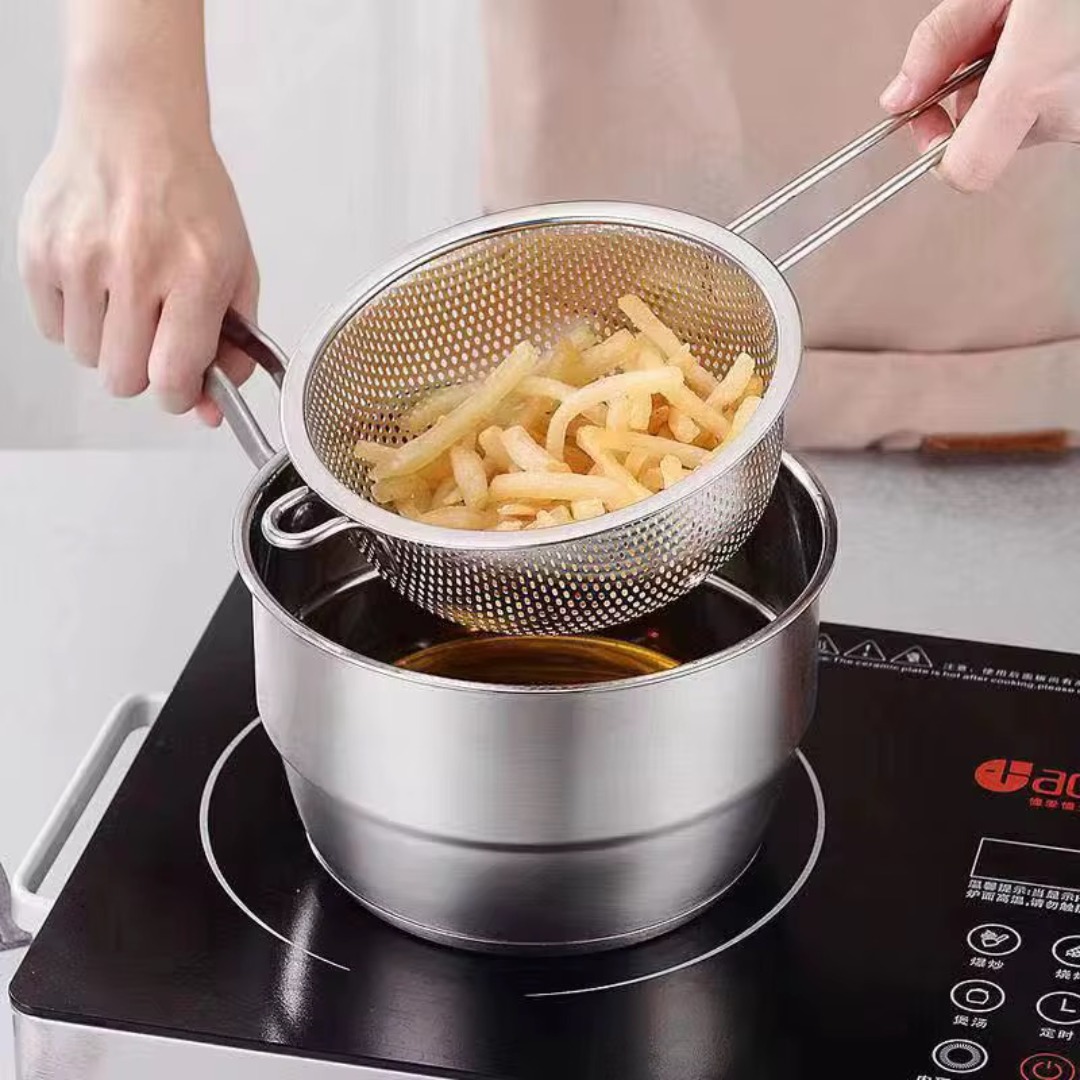 Fine mesh design: The finely woven mesh ensures efficient draining while preventing smaller food particles from escaping.