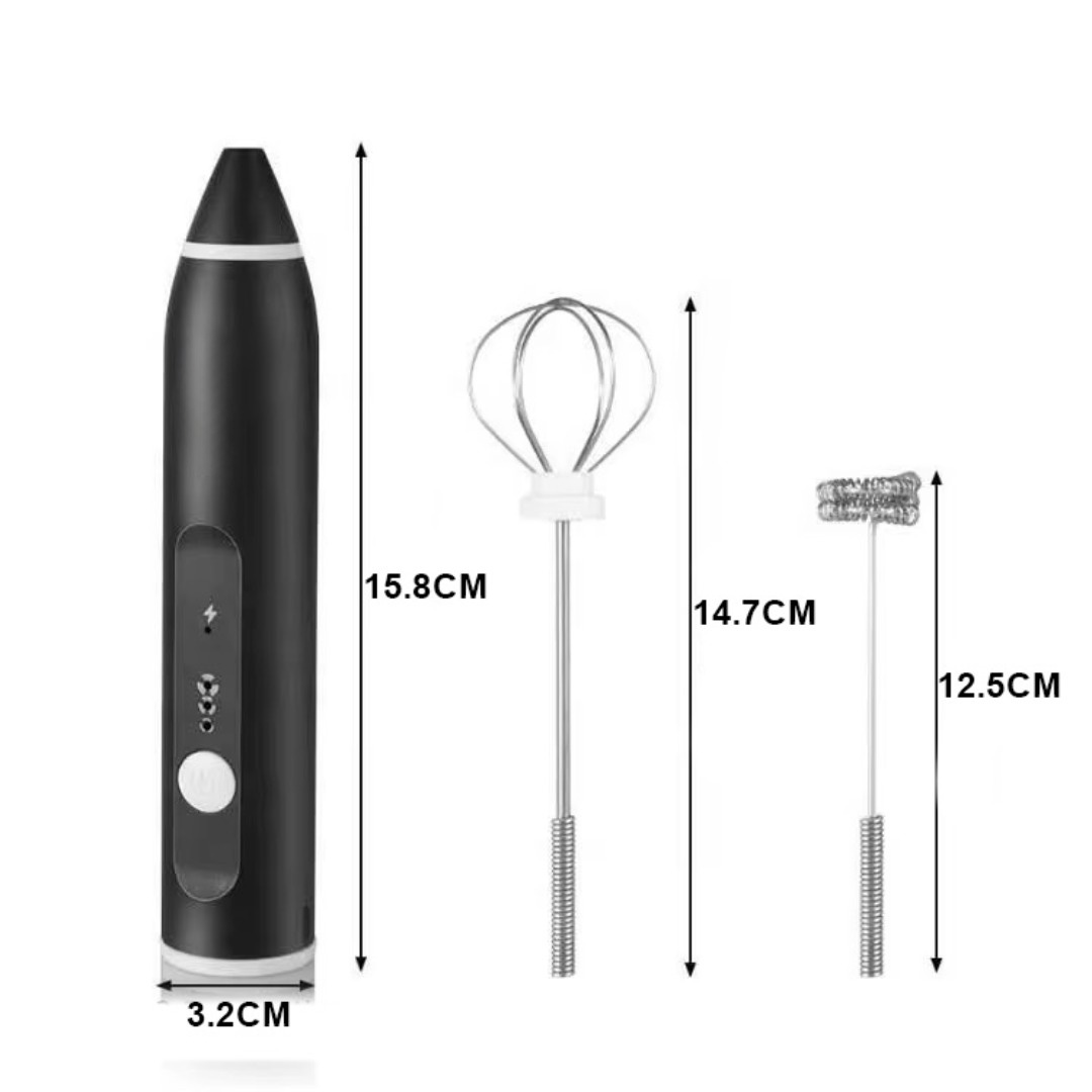 Versatile Frothing Tool: Includes multiple attachments such as a whisk for frothing milk, a coil whisk for coffee, and a beater for egg mixing, making it perfect for various uses in the kitchen.