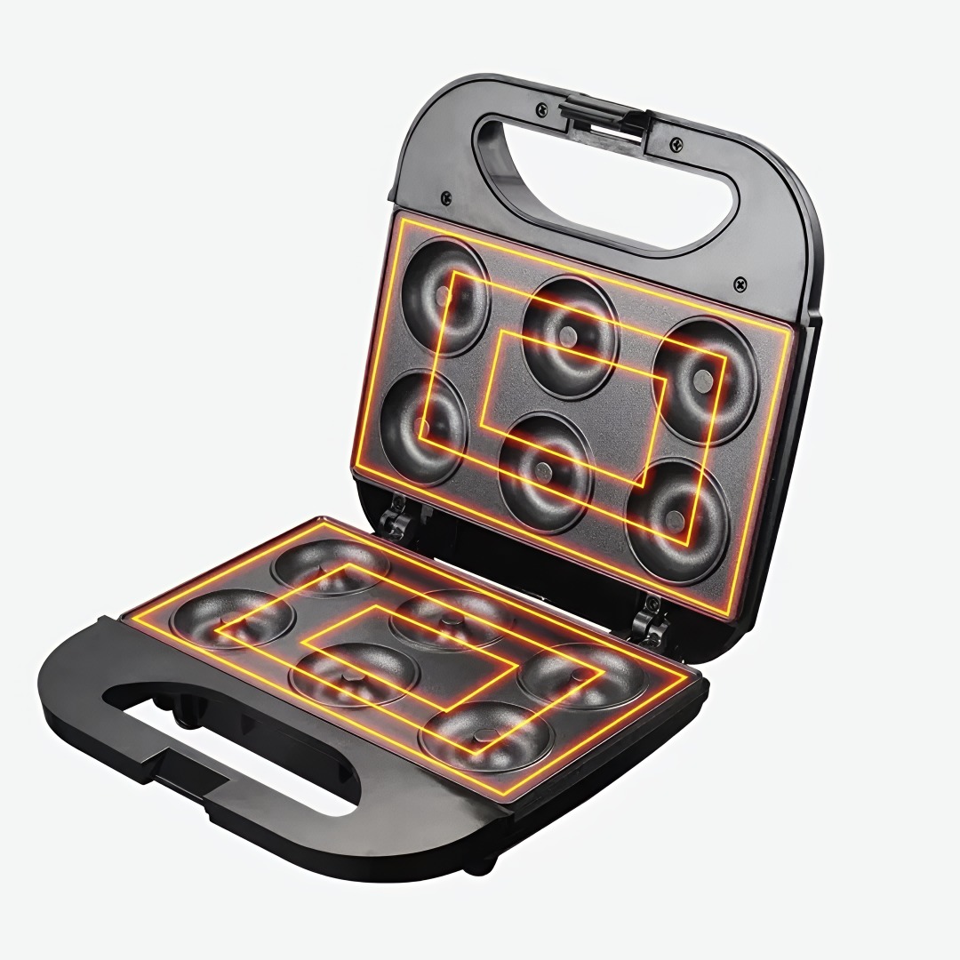 Compact and Portable Design: The donut maker features a sleek, compact design (measuring 23 cm x 23 cm x 7 cm), making it easy to store and ideal for small kitchens or countertop use.