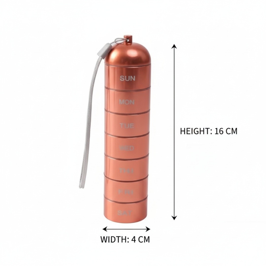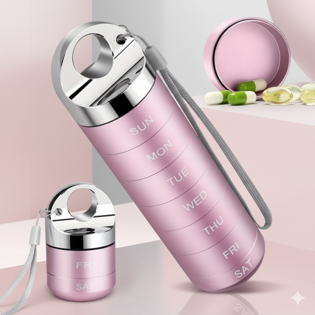 Premium Weekly Pill Organizer: Designed with seven labeled compartments (SUN–SAT) to help you organize your pills or supplements efficiently for each day of the week.