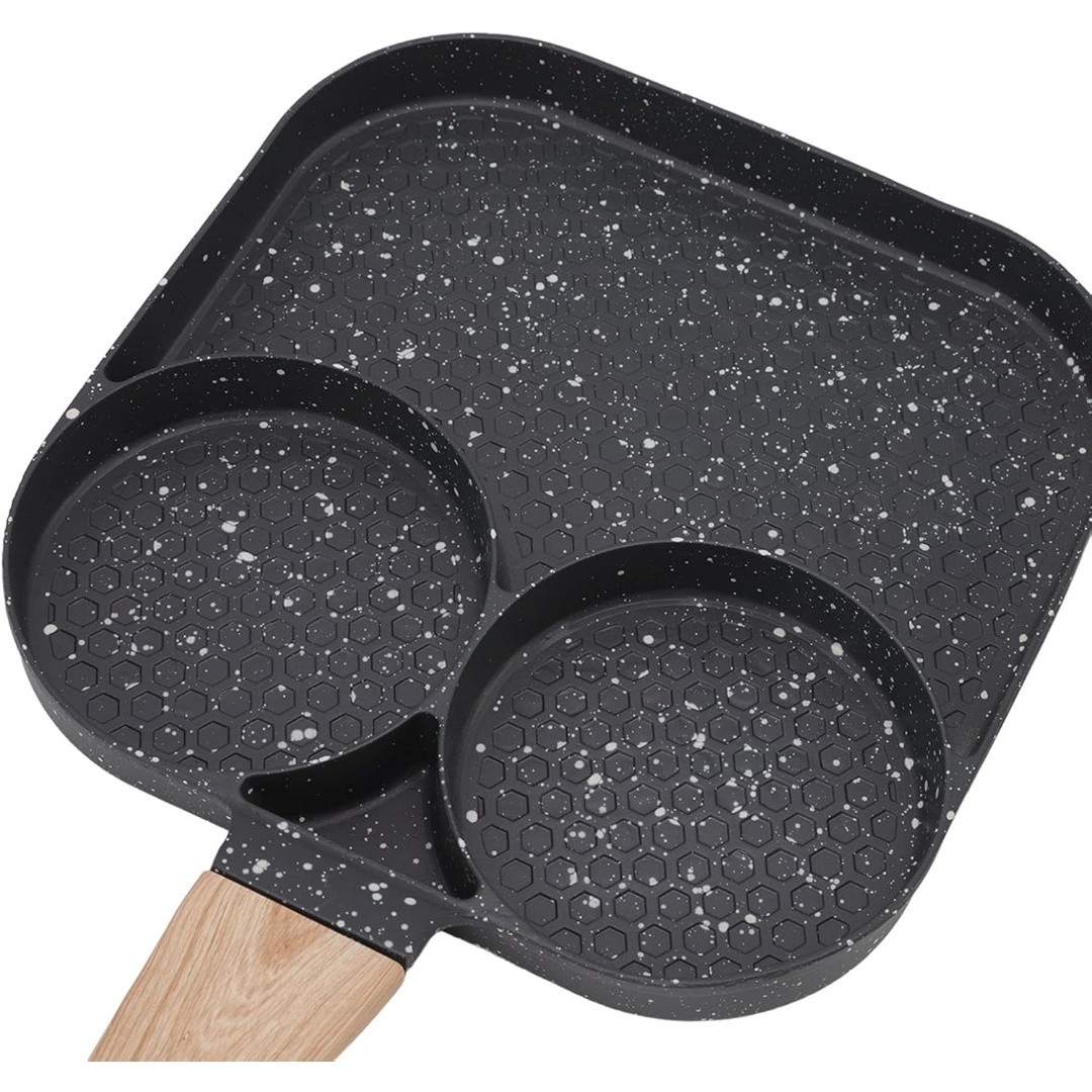 Multi-Section Cooking Design: Features three divided sections that let you cook eggs, pancakes, and bacon simultaneously without mixing flavors.