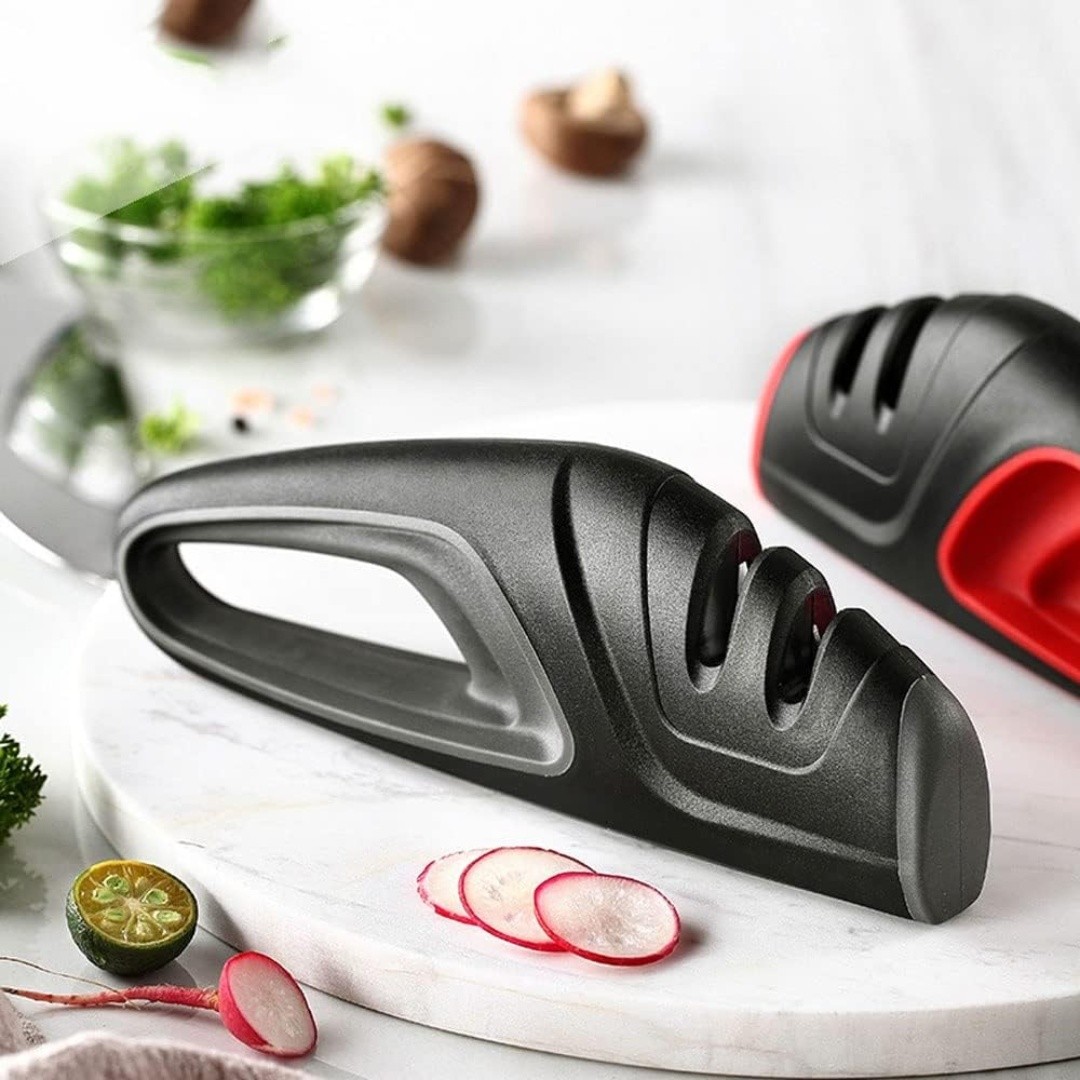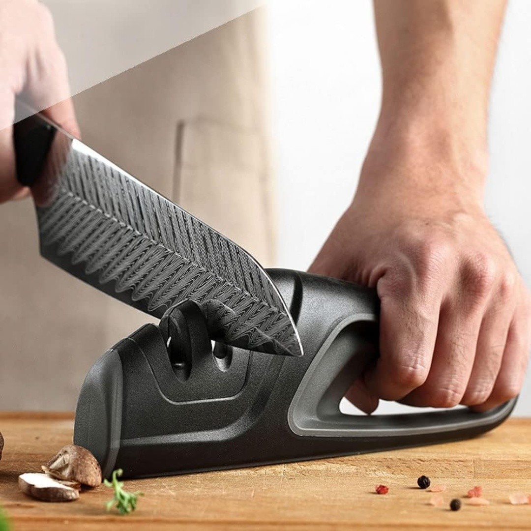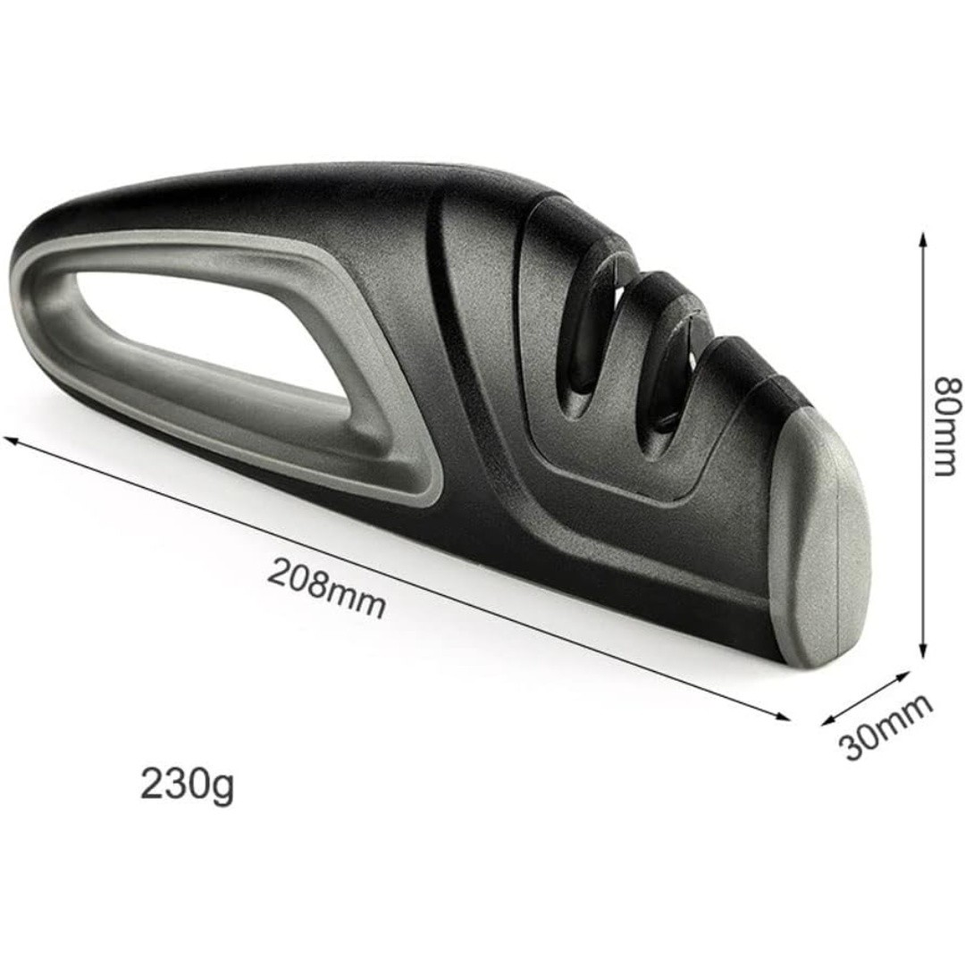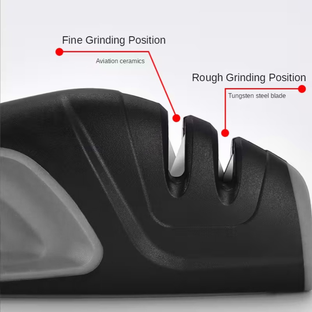 Dual Sharpening Stages: Features two slots – one for coarse grinding (reshaping dull blades) and another for fine grinding (smoothing and refining the edge).