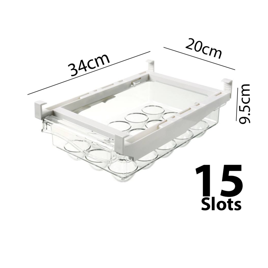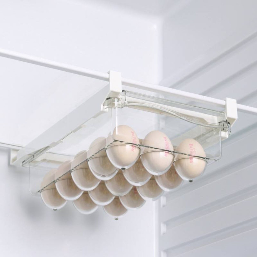 Space-Saving Design: Clever under-shelf installation utilizes unused refrigerator space, keeping your eggs neatly arranged and easily within reach.