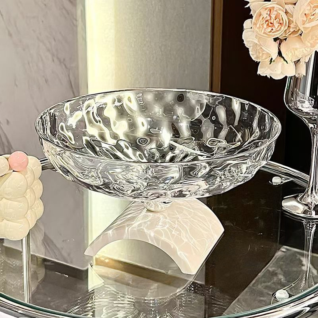 Elegant Design: Features a transparent textured glass bowl paired with a glossy white base, adding modern sophistication to any space.