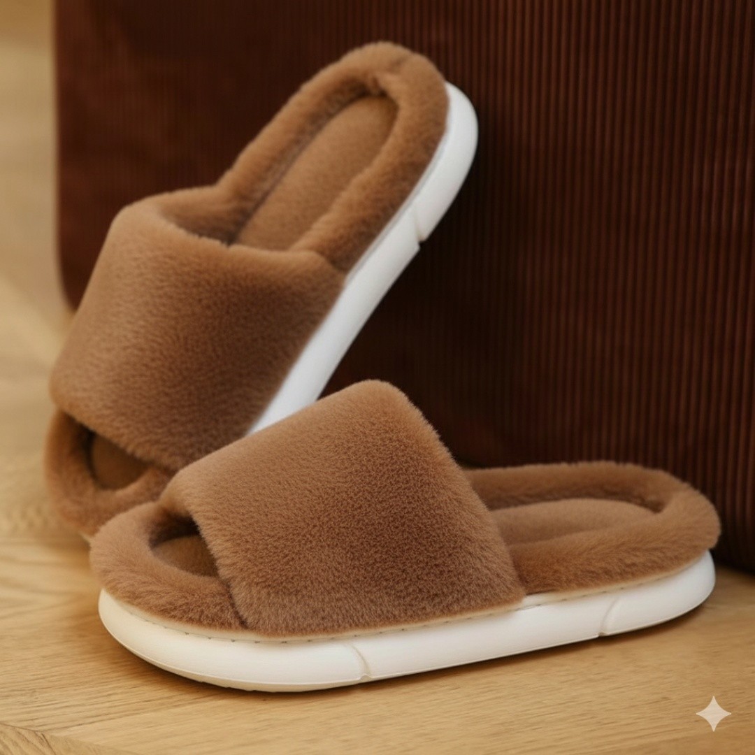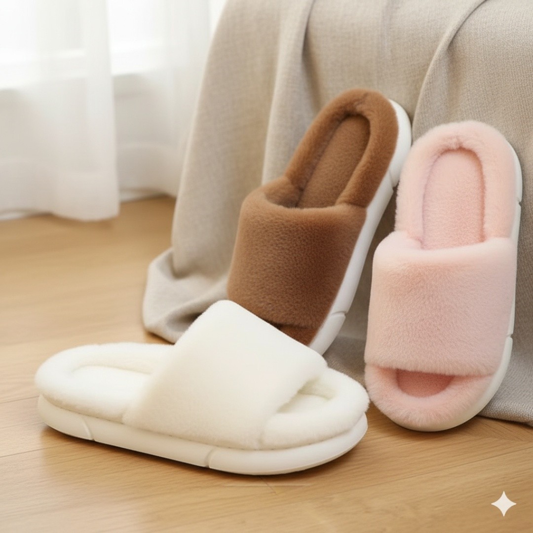Cozy Plush Slippers: Crafted with ultra-soft faux fur that wraps your feet in warmth and comfort for all-day relaxation.