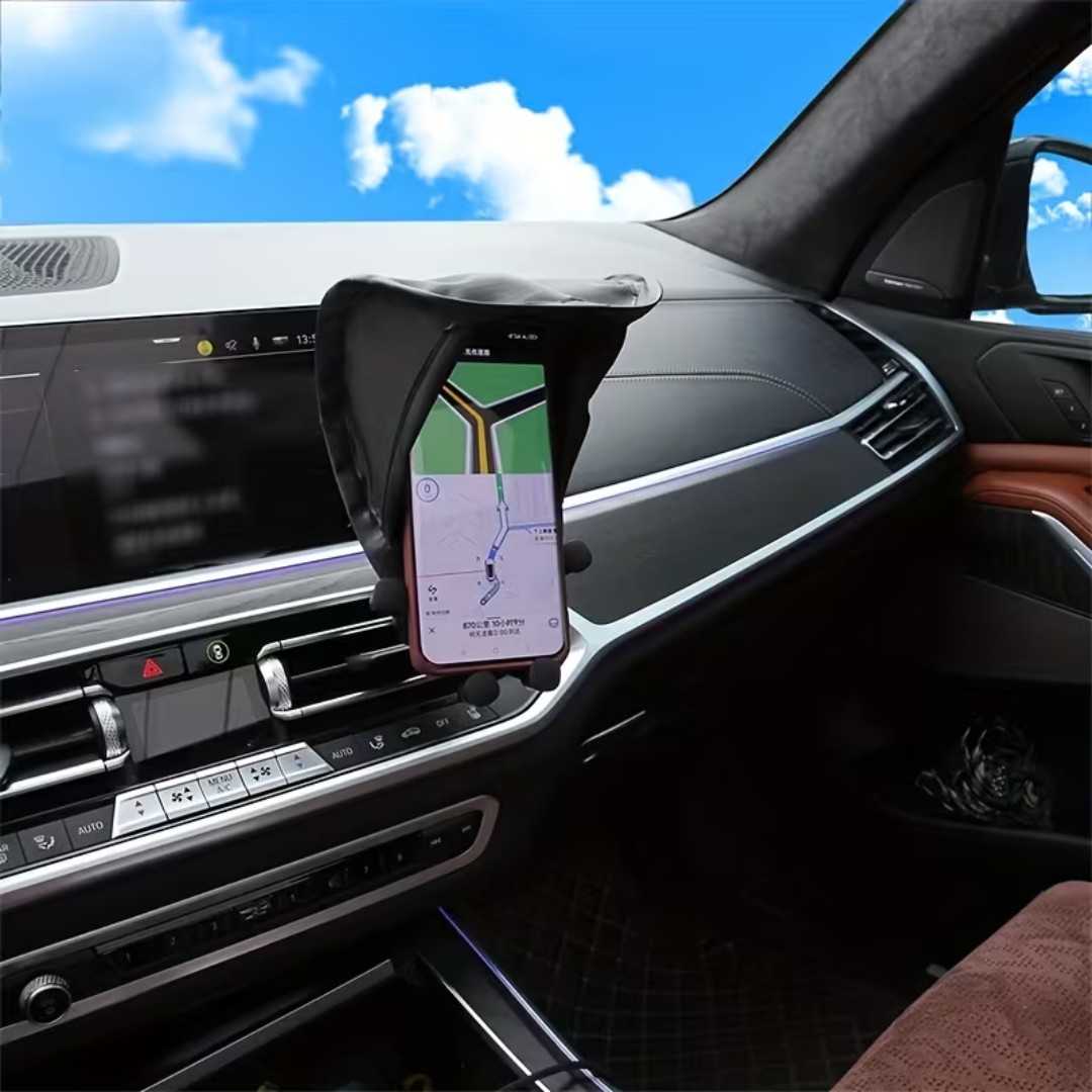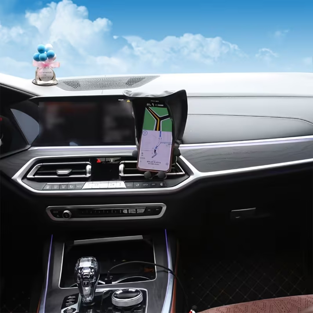 Anti-Glare Sunshade Design: Effectively blocks sunlight and reflections from hitting your phone screen, ensuring clear visibility while driving.