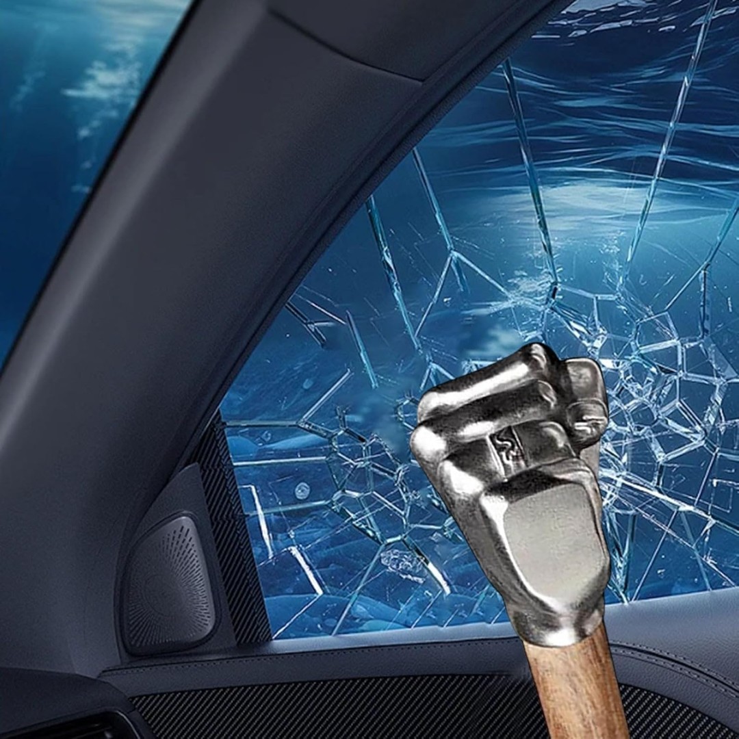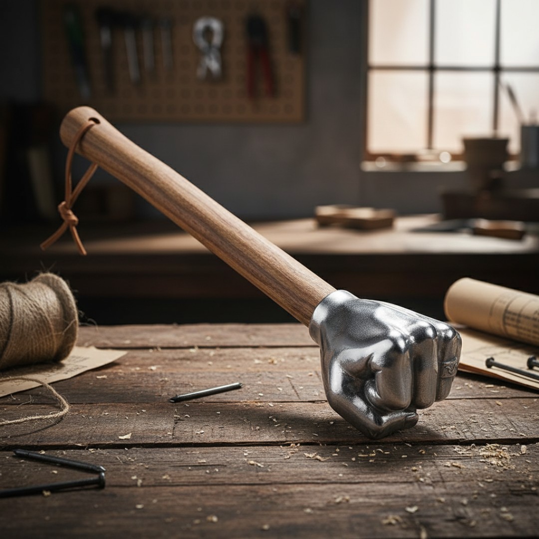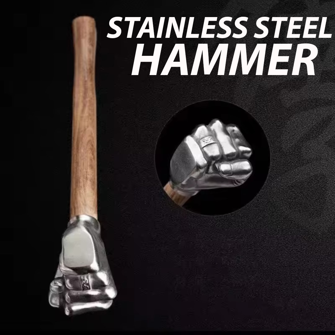 Heavy-Duty Metal Fist Head: Features a solid metal fist-shaped striking head designed for powerful impact and durability during heavy tasks.