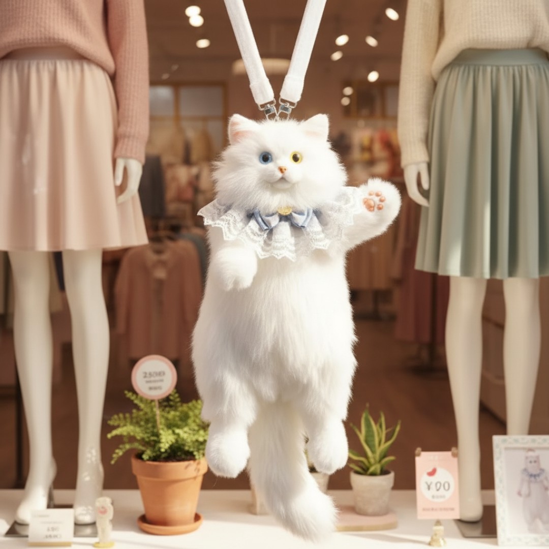 Lifelike Cat Design: Crafted to resemble a realistic, fluffy cat with adorable features, making it a standout accessory for cat lovers.