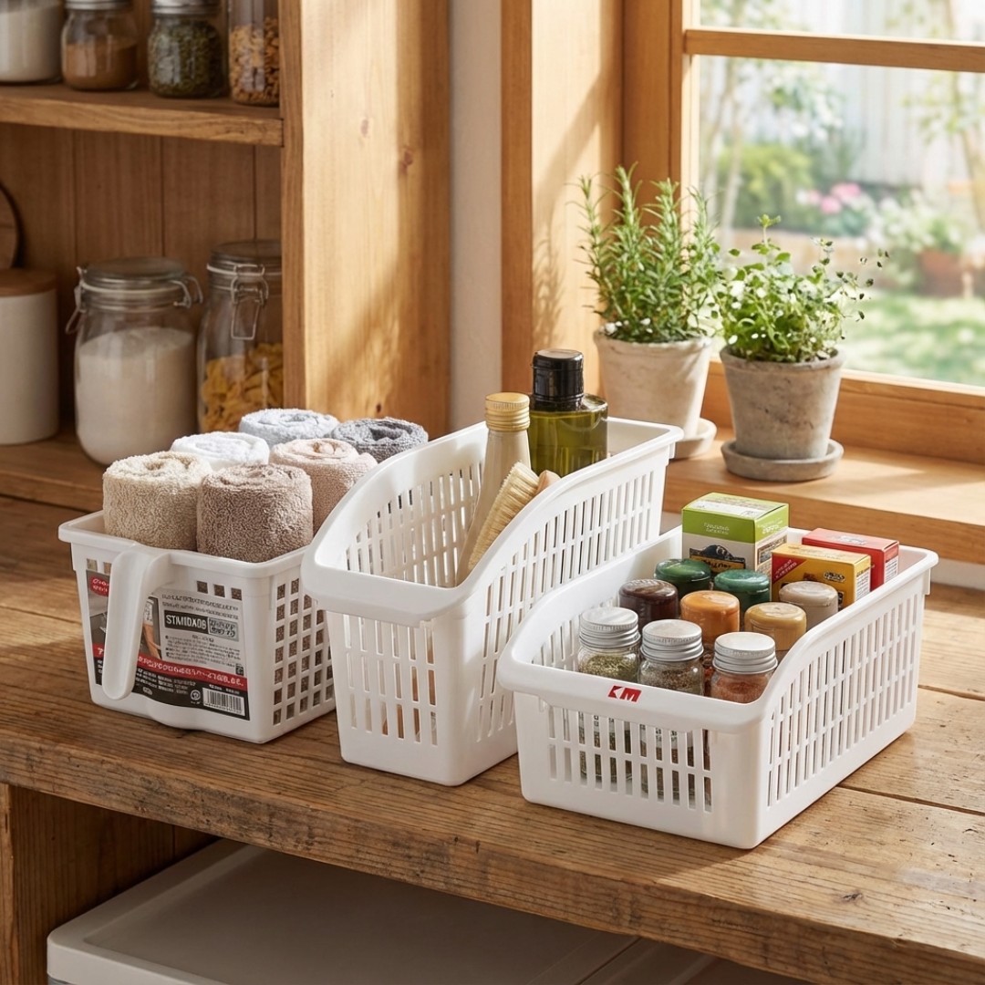 Multi-Purpose Storage Basket: Designed for organizing kitchen, fridge, pantry, bathroom, and household items, keeping essentials neatly arranged and easy to access.
