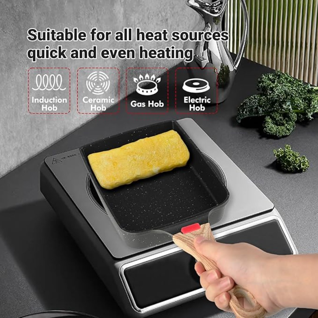 Perfect Rectangular Shape: Designed in a compact rectangular form, ideal for omelettes, sandwiches, grilled vegetables, steak, and rolled egg dishes.