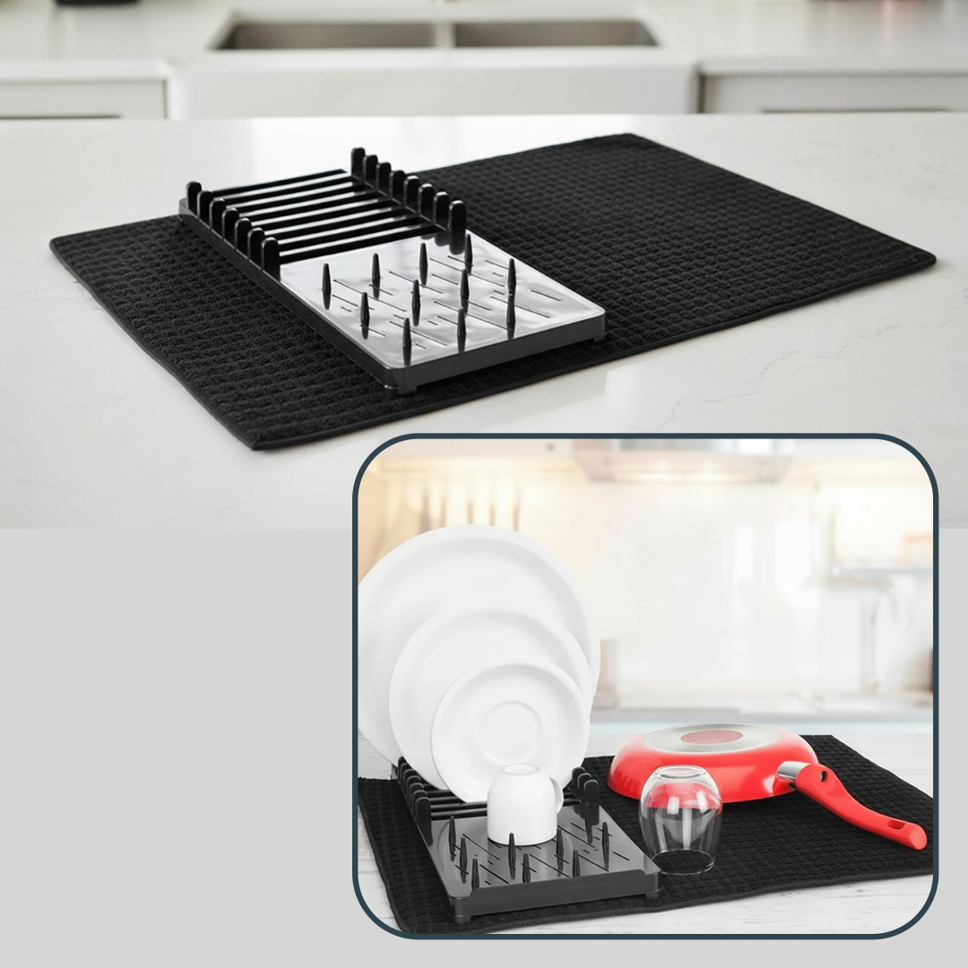 Absorbent Drying Mat: Comes with a large, soft microfiber mat that quickly absorbs excess water, keeping countertops dry and protected from spills.