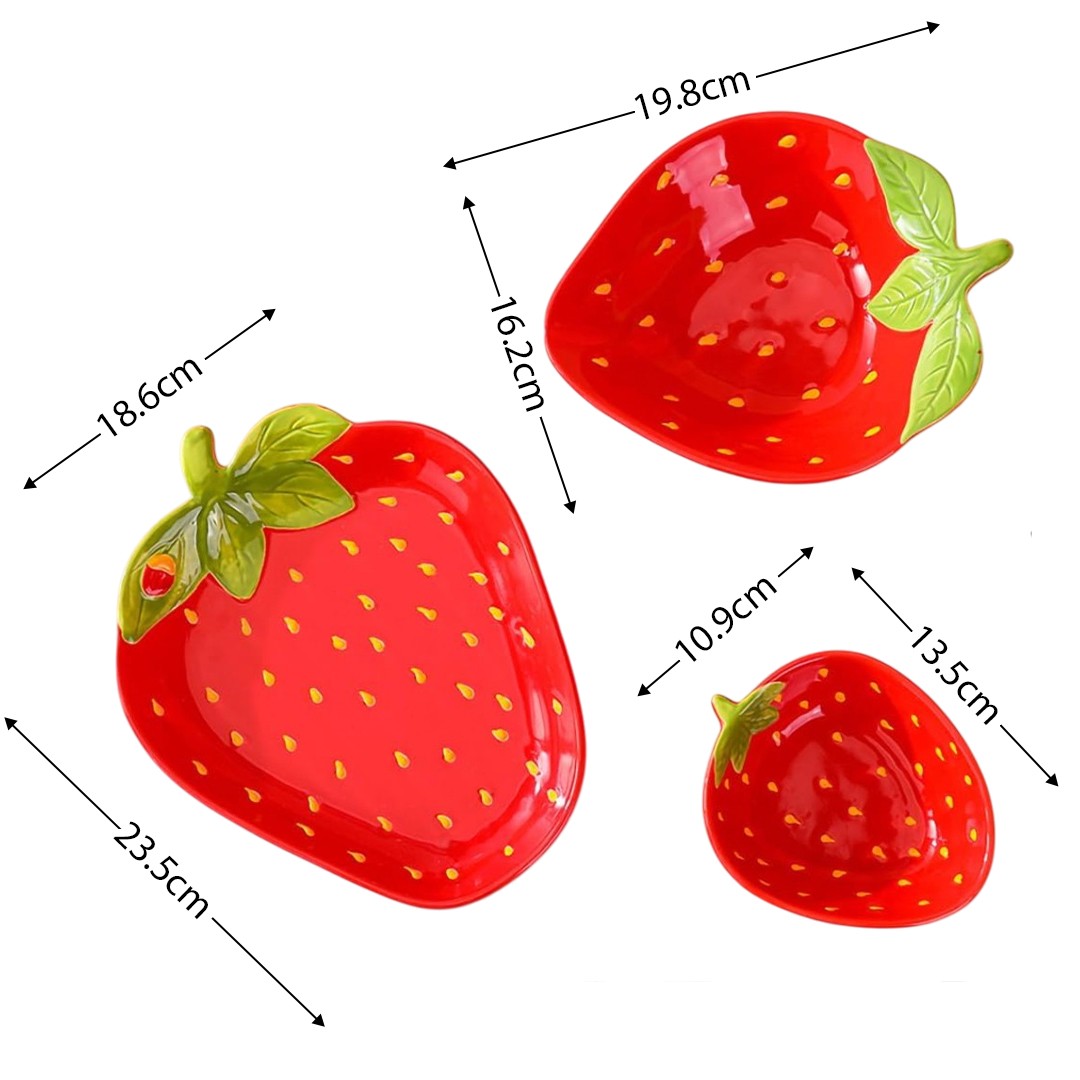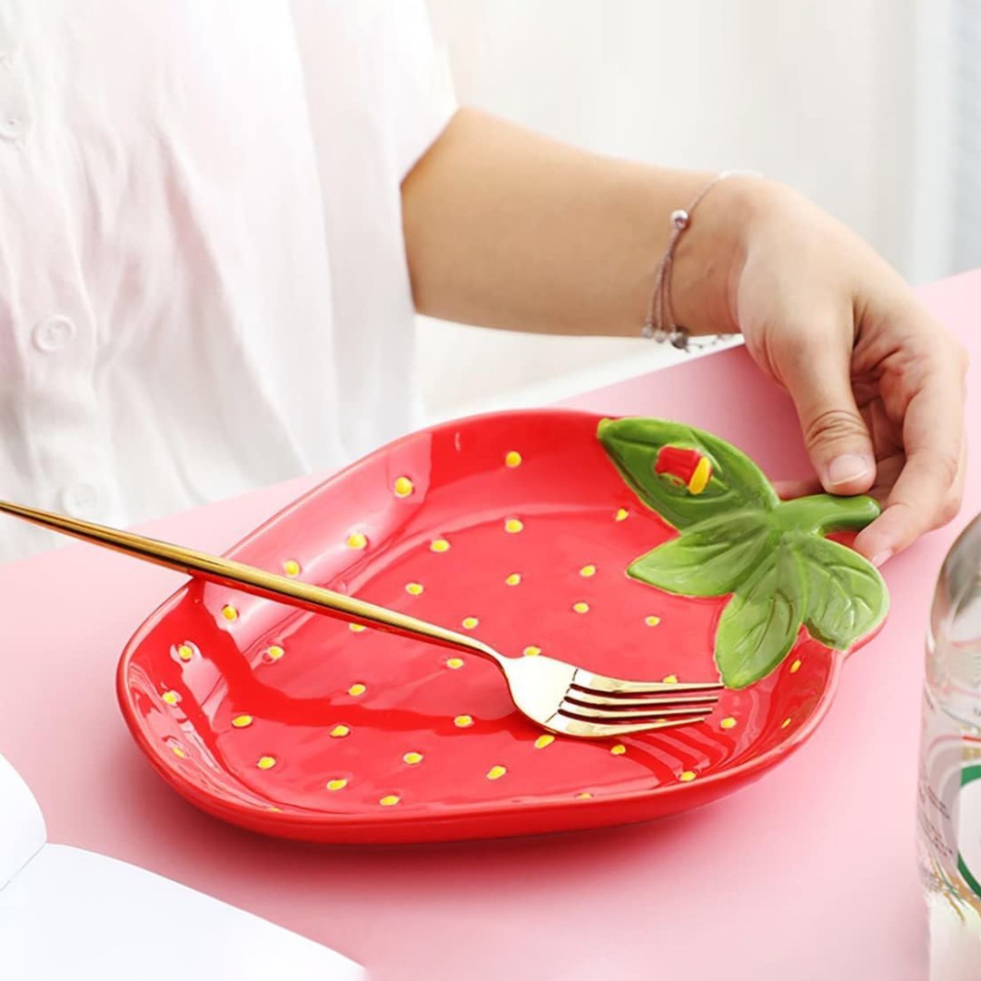Playful Strawberry Design: Features a charming strawberry shape with vibrant red color and detailed green leaf accents that add a fun, decorative touch to any table setting.