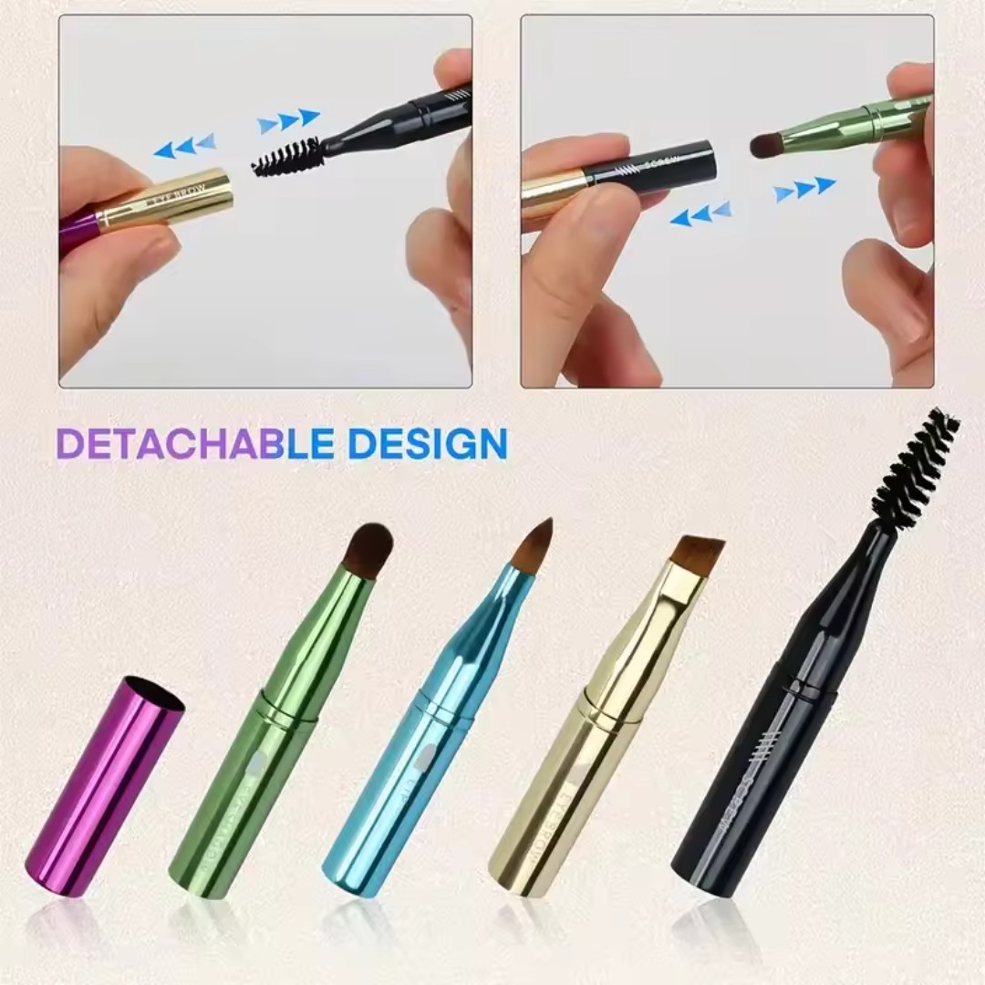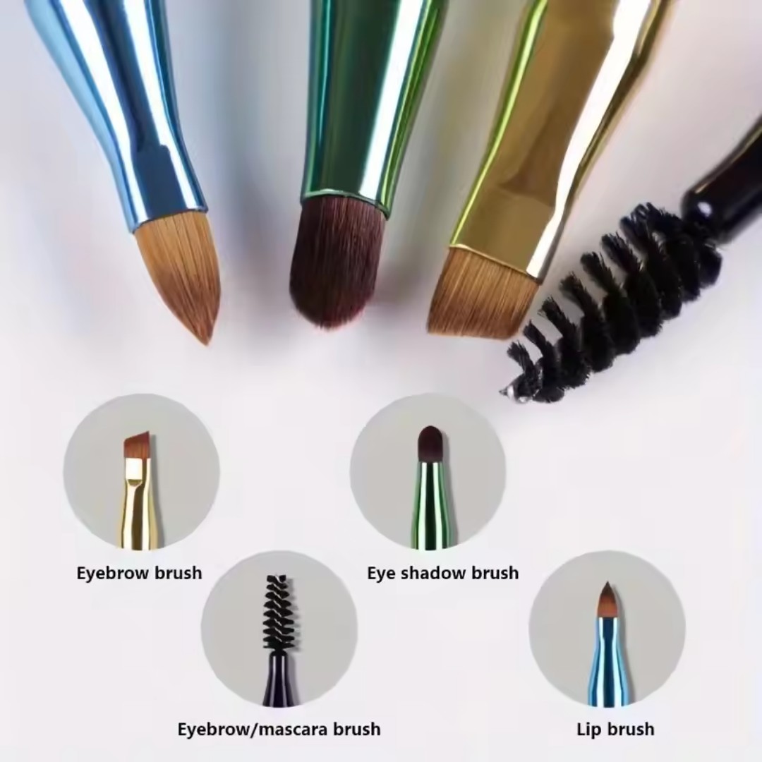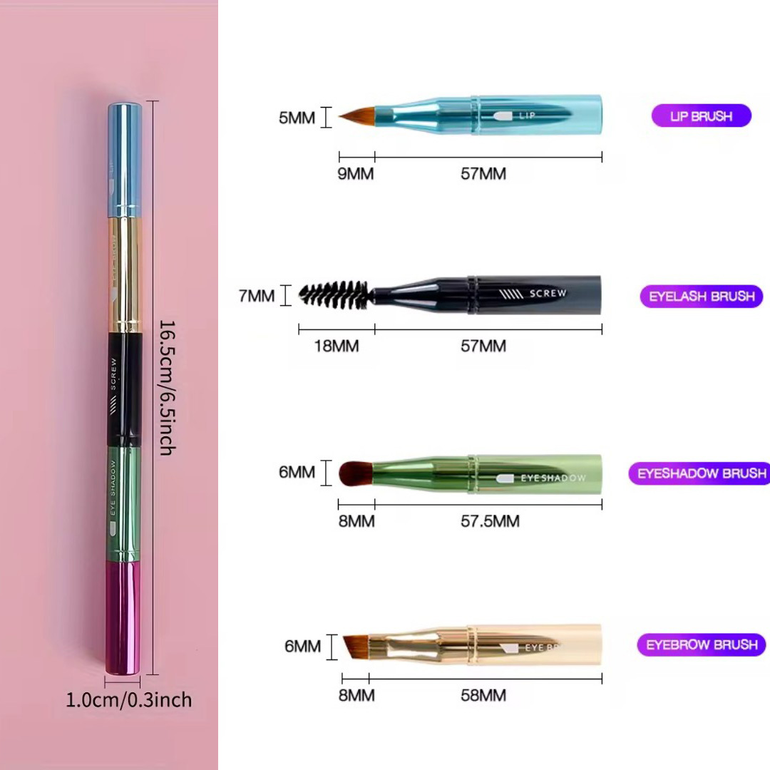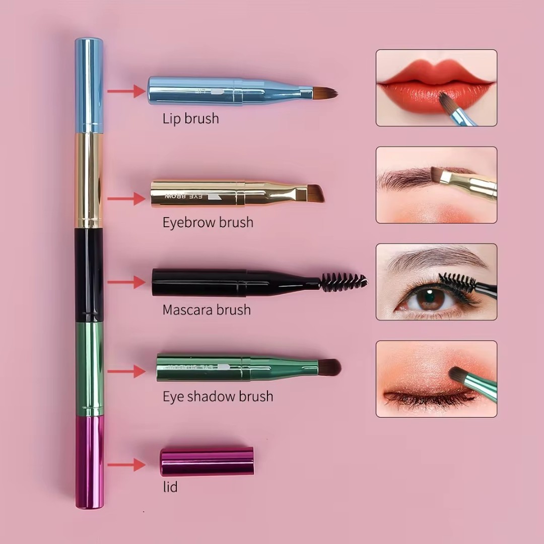 Four-in-One Multifunction Design: Combines lip brush, eyeshadow brush, angled eyebrow brush, and spiral mascara brush in one compact tool for complete eye and lip makeup.