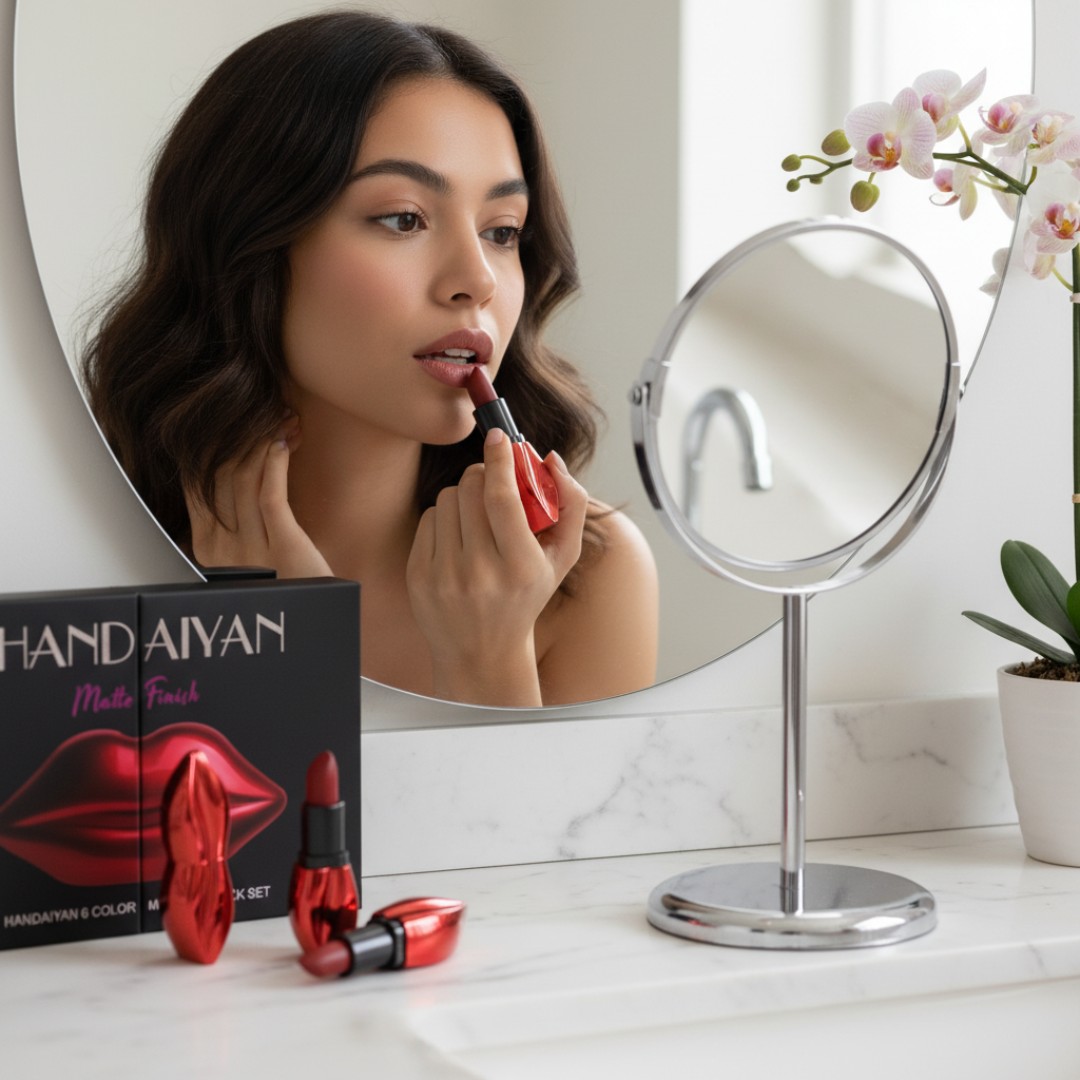 6-Piece Matte Lipstick Set: Includes six beautifully coordinated matte lipstick shades, offering versatile color options for everyday wear and special occasions.