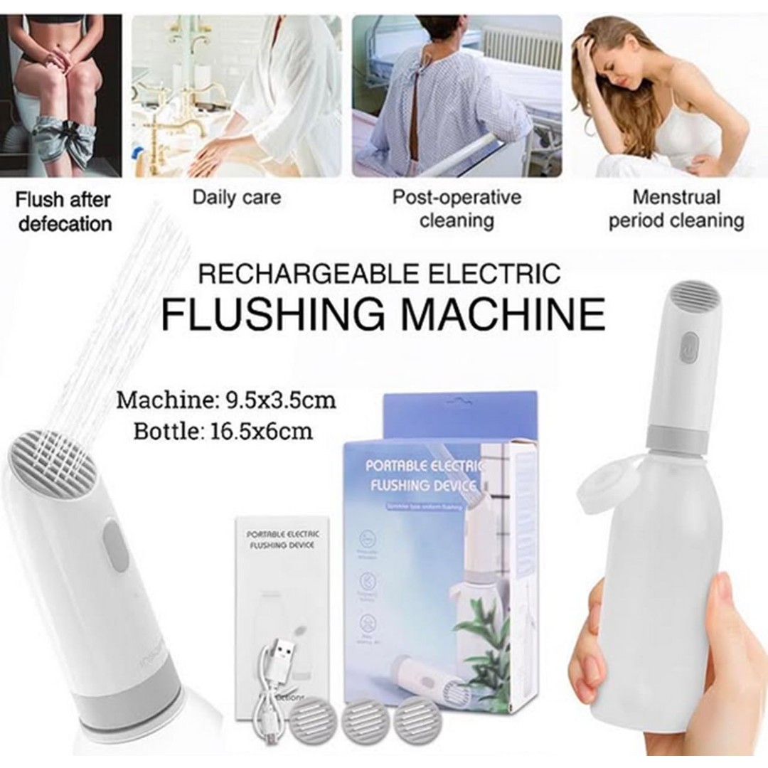 Portable Hygienic Flushing System: Designed for personal hygiene, this portable electric flusher provides gentle and effective water cleaning, ideal for toilets, travel, camping, and daily personal care.