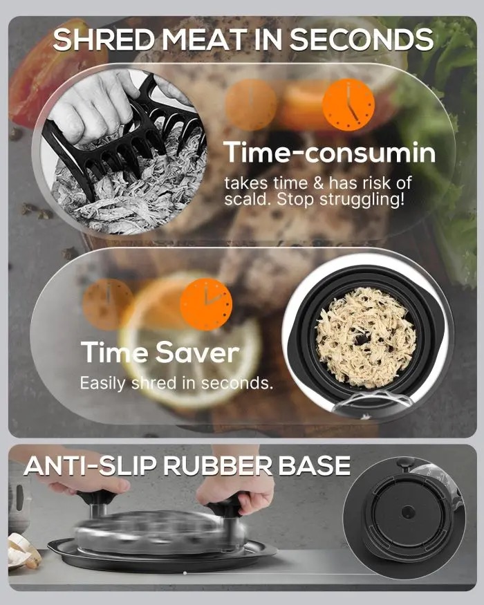 Efficient Shredding: Fully covered plastic teeth ensure even shredding without repositioning, simplifying meal prep.
