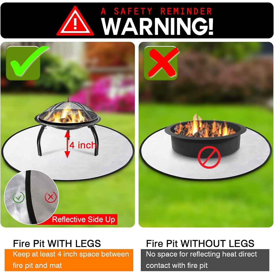 Large 120cm Coverage Area: Wide circular design provides full ground coverage, suitable for most fire pits and grills under 36 inches with legs, ensuring complete surface protection.
