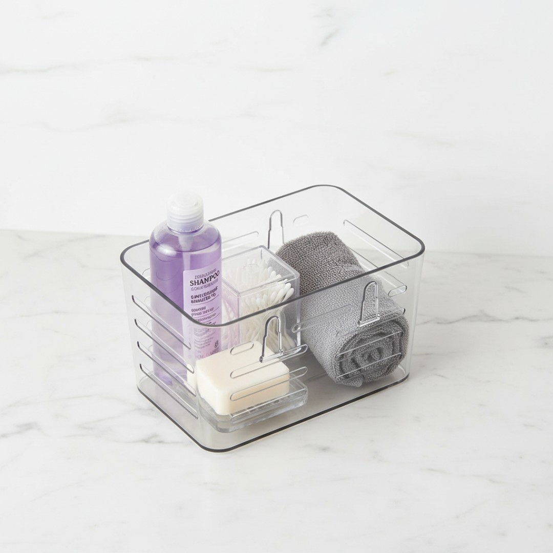 Ventilated Drainage Design: Features side and bottom slots that allow water to drain quickly, keeping items dry and hygienic.