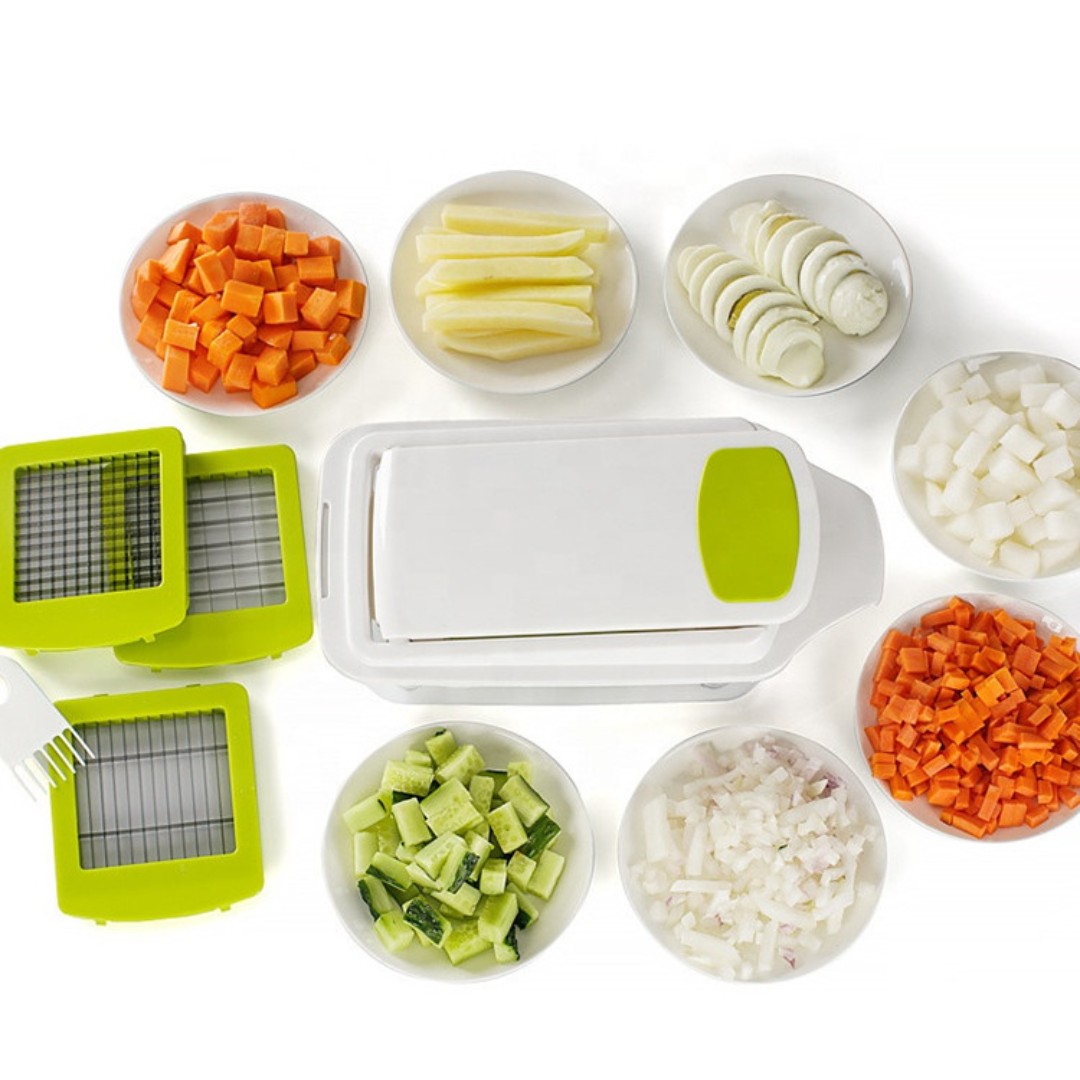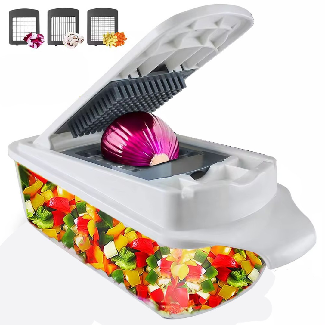 Multi-Function Design: Includes interchangeable cutting grids to handle a variety of foods such as onions, potatoes, carrots, cucumbers, tomatoes, and fruits.