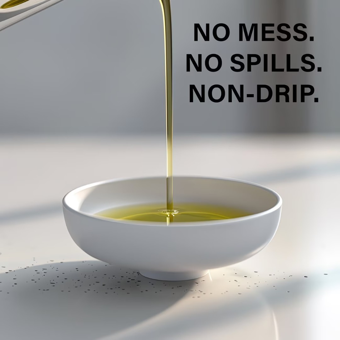 PRECISE NON-DRIP POURING SPOUT: Designed with a narrow, controlled spout to ensure smooth oil flow without spills, drips, or mess on your countertop or dishes.