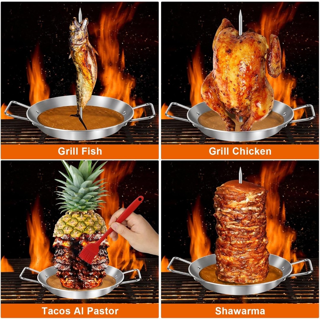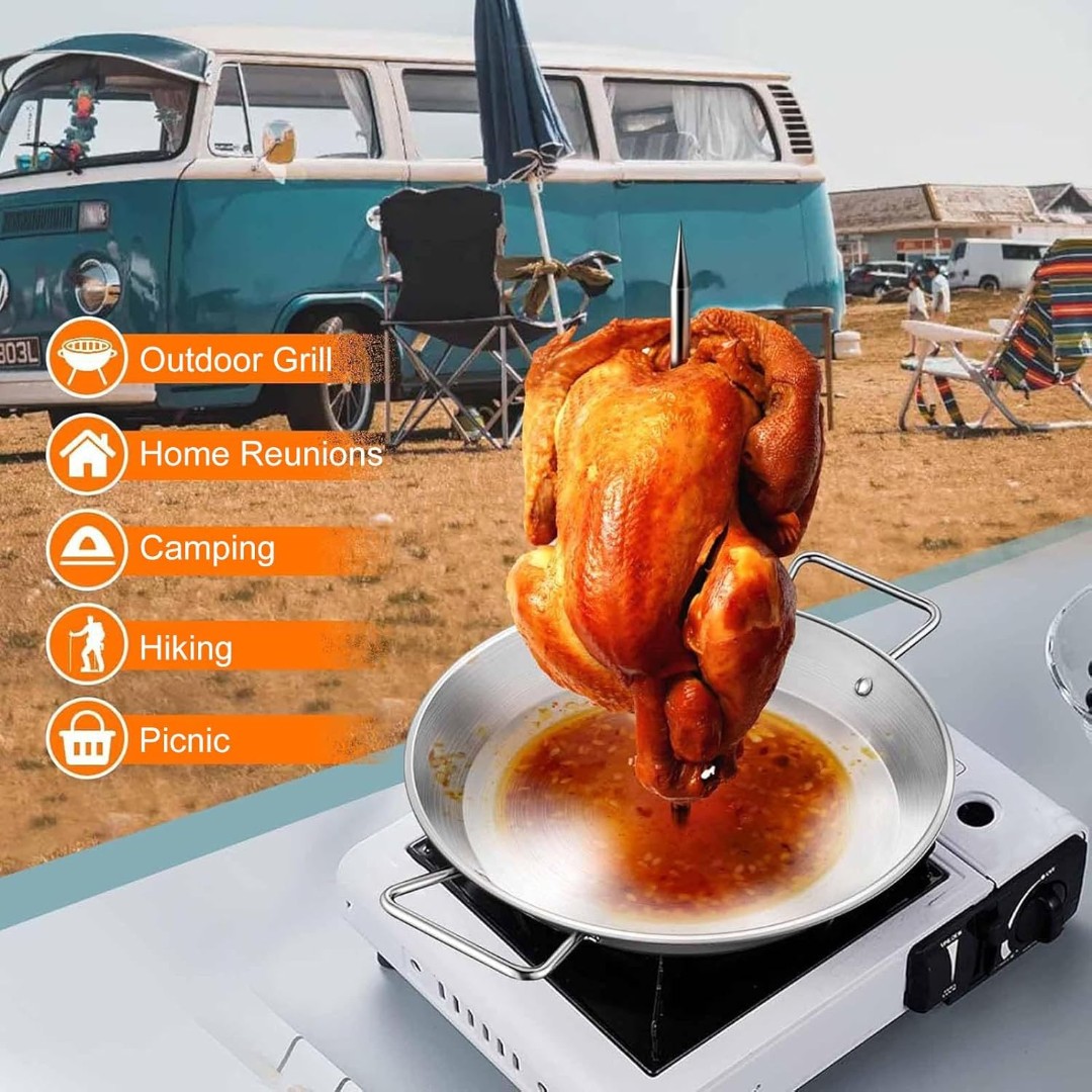 MULTI-FUNCTION VERTICAL ROASTING PAN: Designed with a central skewer to hold chicken, meat, or tacos upright for even roasting and perfect heat circulation.