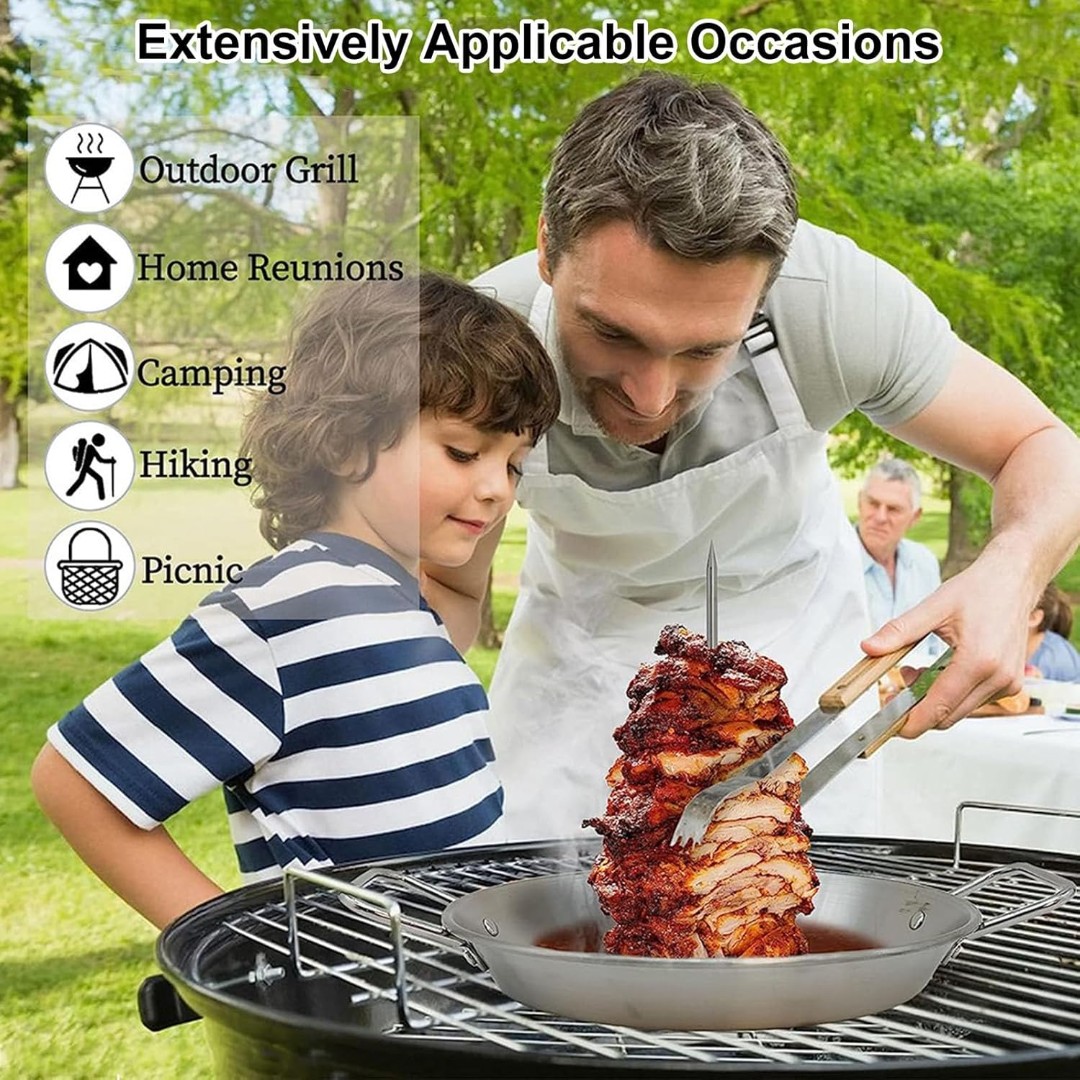 REMOVABLE ADJUSTABLE SKEWER RODS: Includes interchangeable skewer heights (20 cm, 25.4 cm, and 30.48 cm) to suit different food sizes and cooking needs.