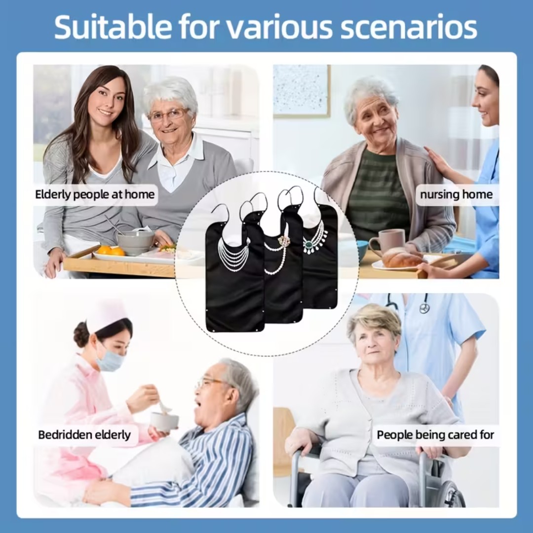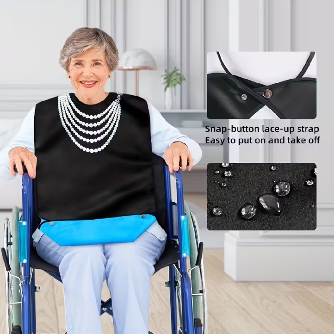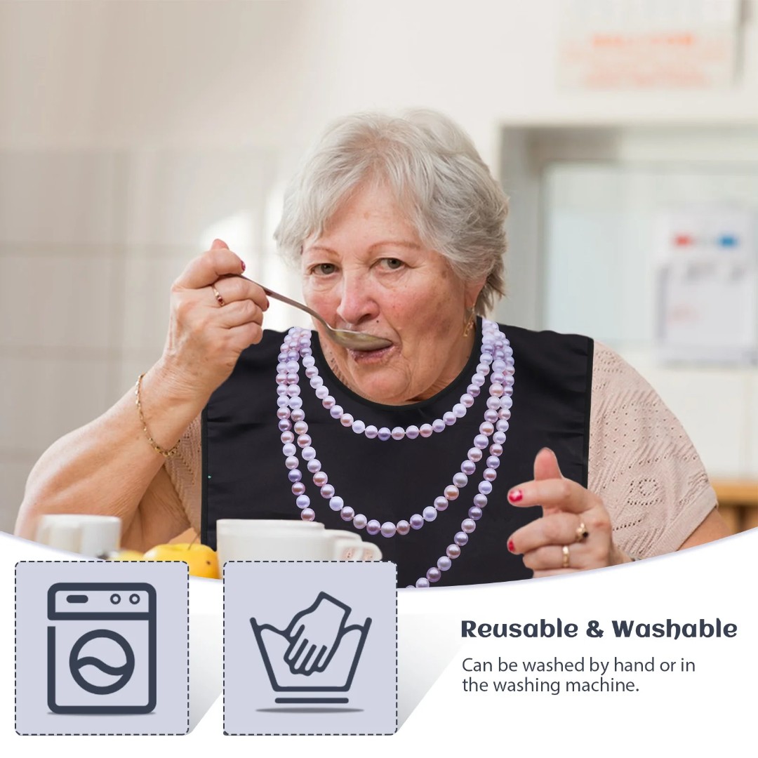 WATERPROOF PROTECTIVE DINING BIB: Designed to shield clothing from food spills, liquids, and stains, keeping users clean and comfortable during meals.