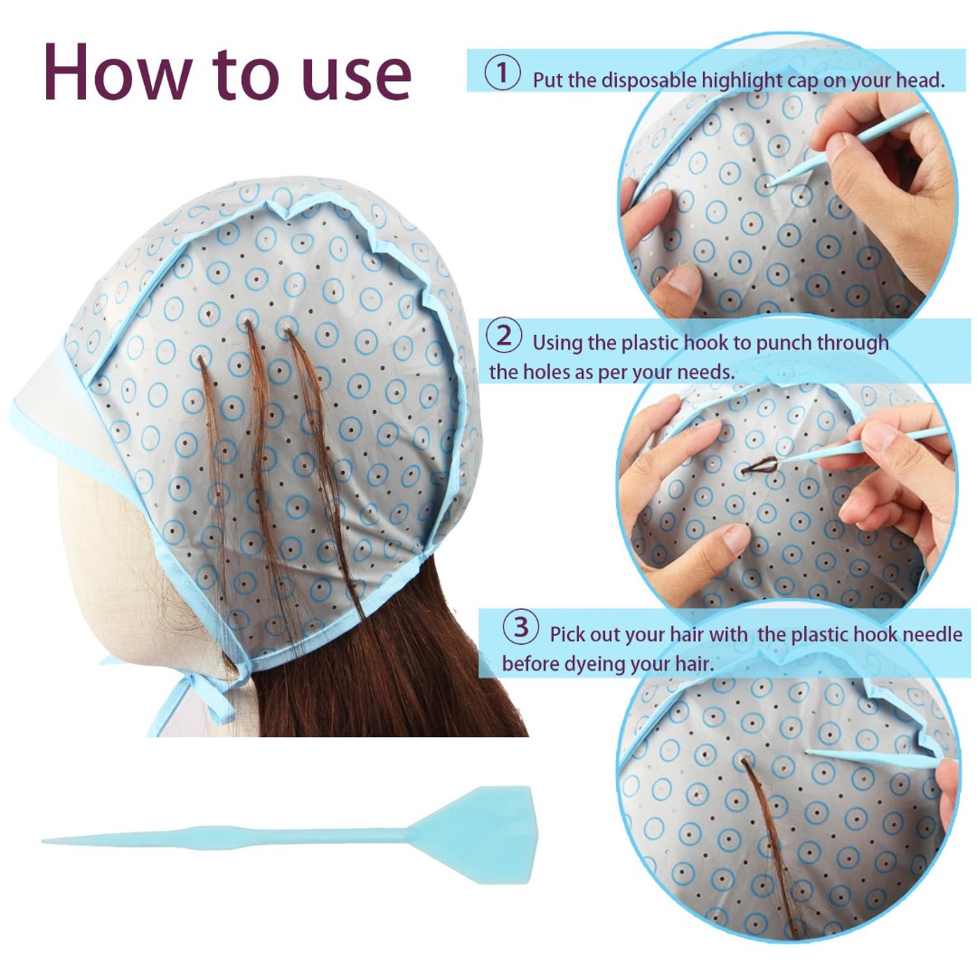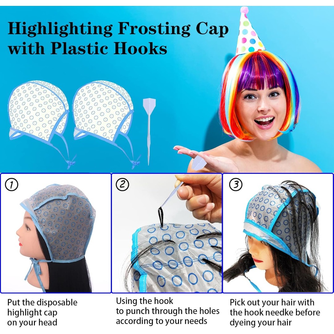 REUSABLE HIGHLIGHTING FROSTING CAP SET: Designed for safe and precise hair coloring, highlighting, or frosting at home or in professional salons.