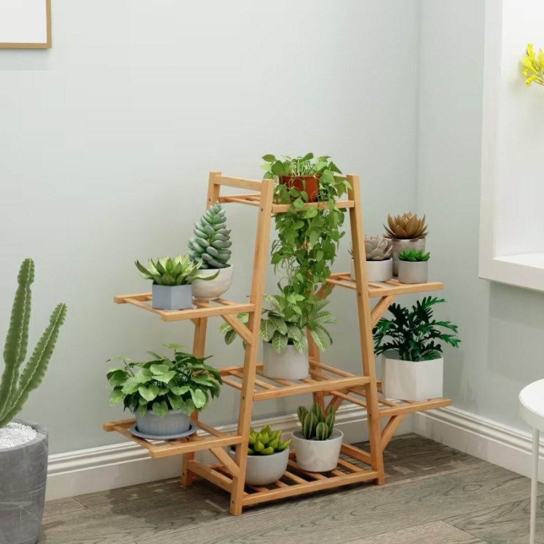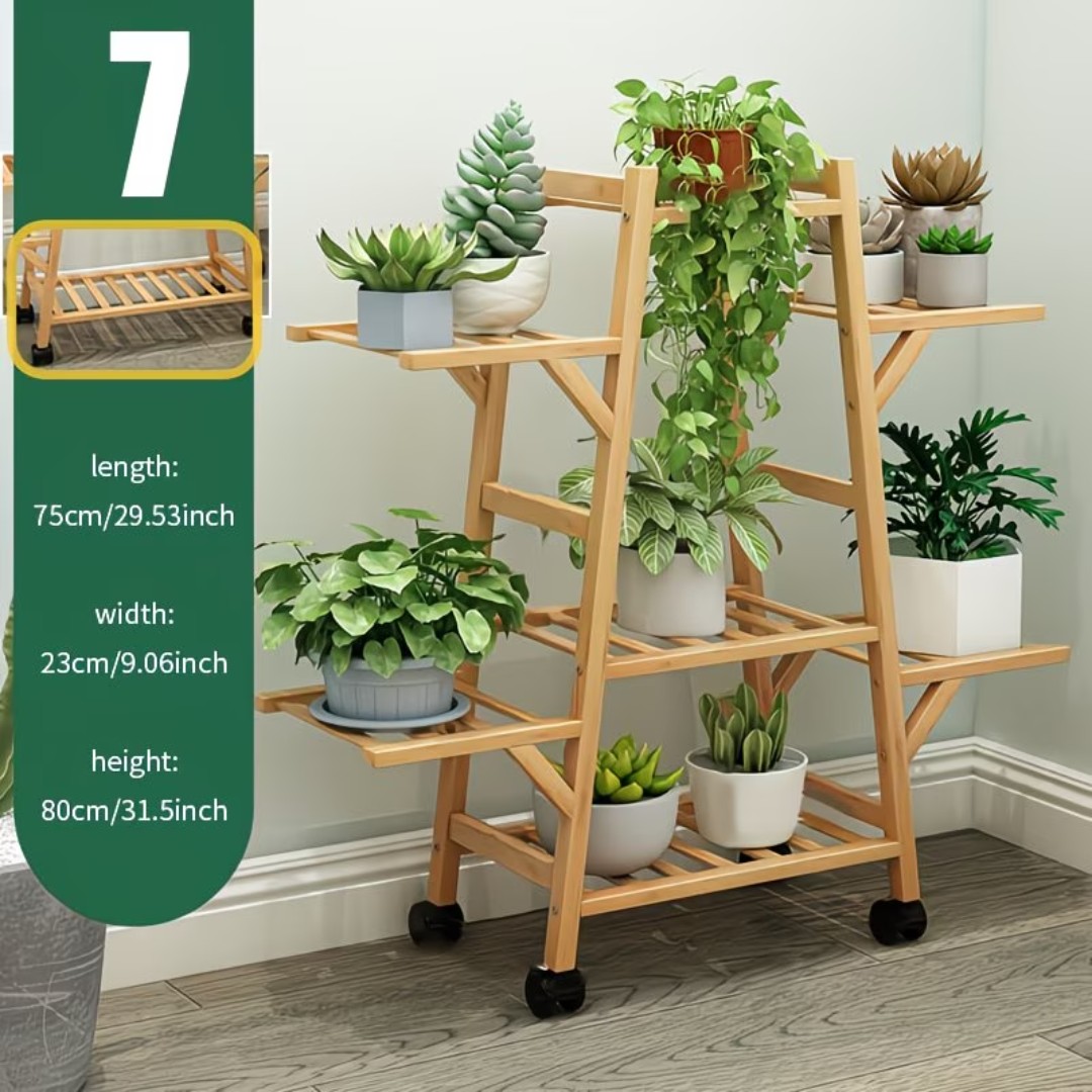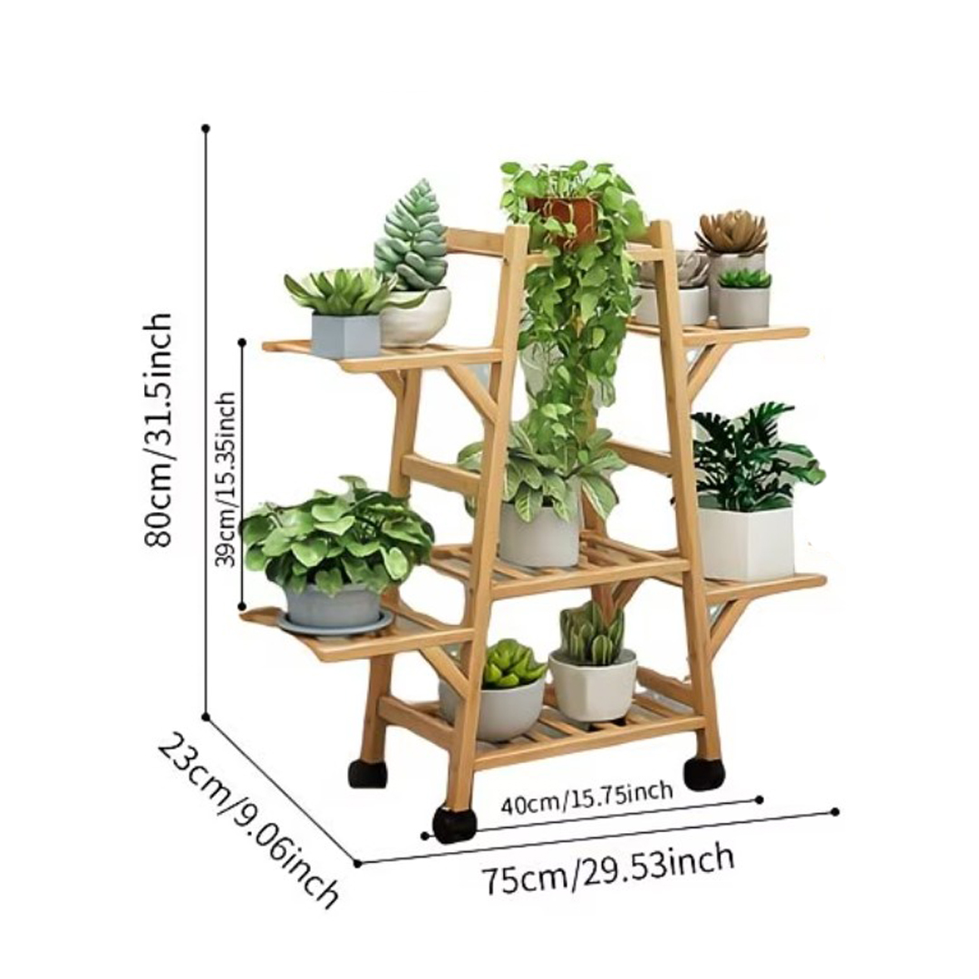 MULTI-TIER WOODEN PLANT STAND: Elegant ladder-style design with multiple shelves provides organized display space for plants, flowers, or decorative items.