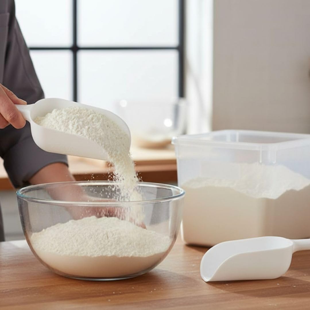 HIGH-QUALITY FOOD-GRADE MATERIAL: Made from durable, food-safe plastic that is lightweight, sturdy, easy to clean, and suitable for everyday kitchen use with flour, rice, grains, or ingredients.