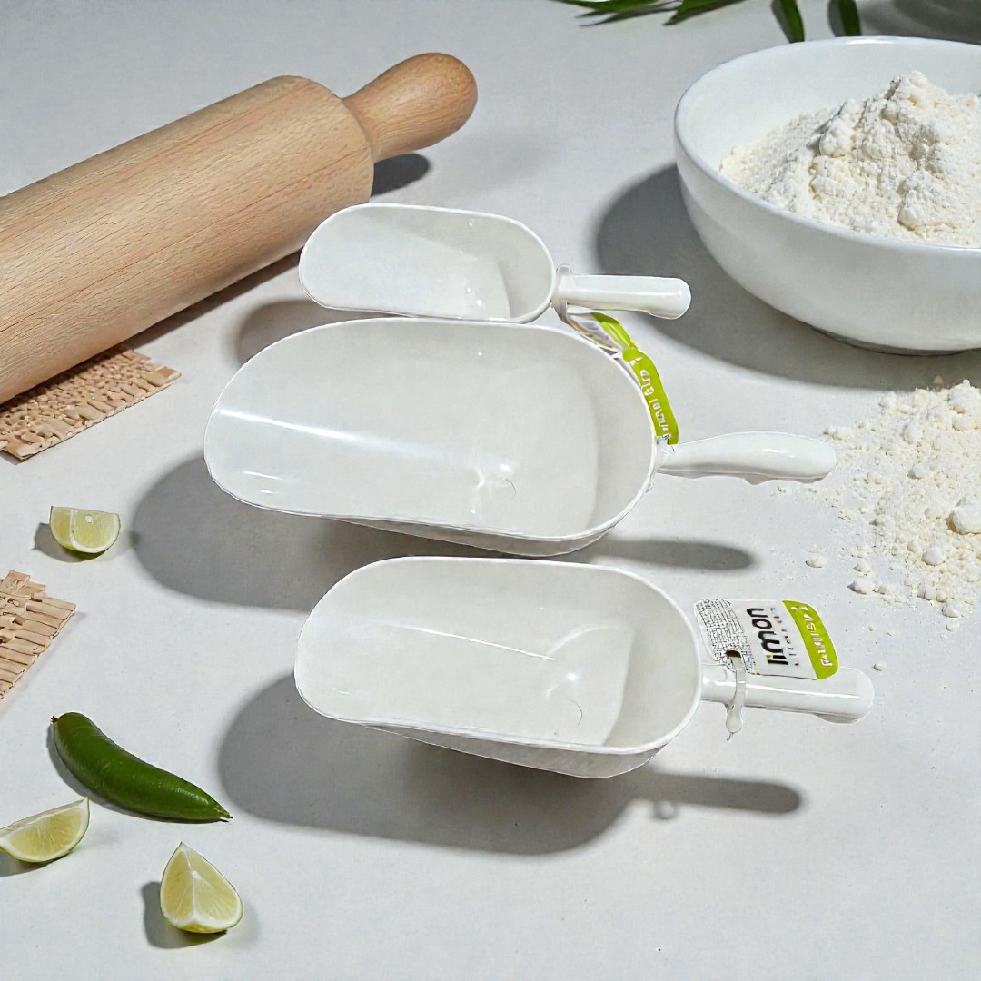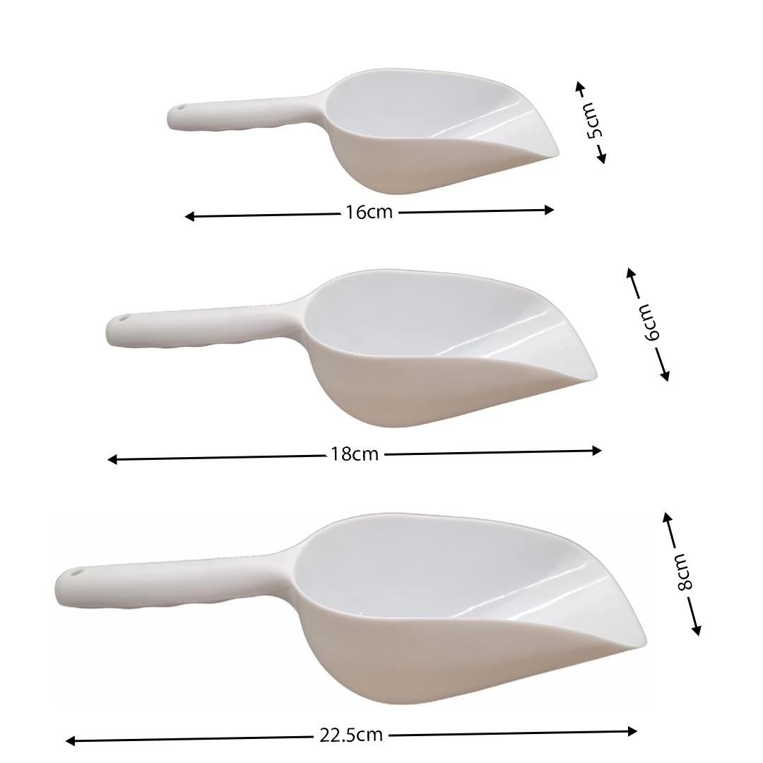 THREE CONVENIENT SCOOP SIZES: Set includes multiple scoop capacities to handle small, medium, and large portions efficiently for baking, cooking, or food storage containers.