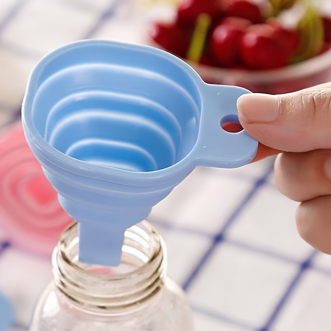Flexible Collapsible Silicone Funnel: Designed with a smart collapsible structure that easily expands for use and folds flat for compact storage, making it perfect for kitchens, travel, and outdoor use.