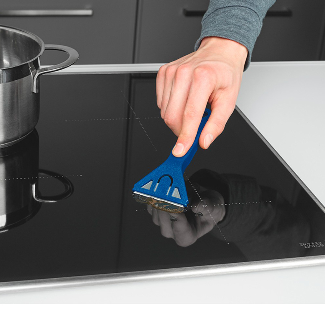 Heavy-Duty Cleaning Scraper: Designed with a sharp stainless steel blade that effectively removes stubborn stains, grease, burnt residue, stickers, glue, and paint from glass, tiles, cooktops, and other smooth surfaces.