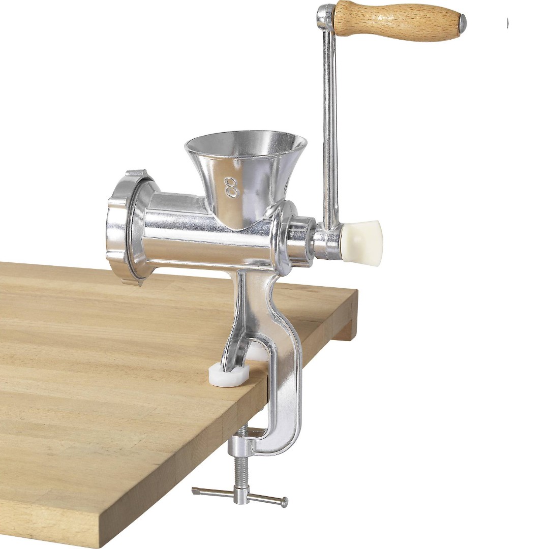 Smooth Hand-Crank Operation: Features an ergonomic wooden handle and smooth rotating mechanism that makes grinding meat easy with minimal effort.