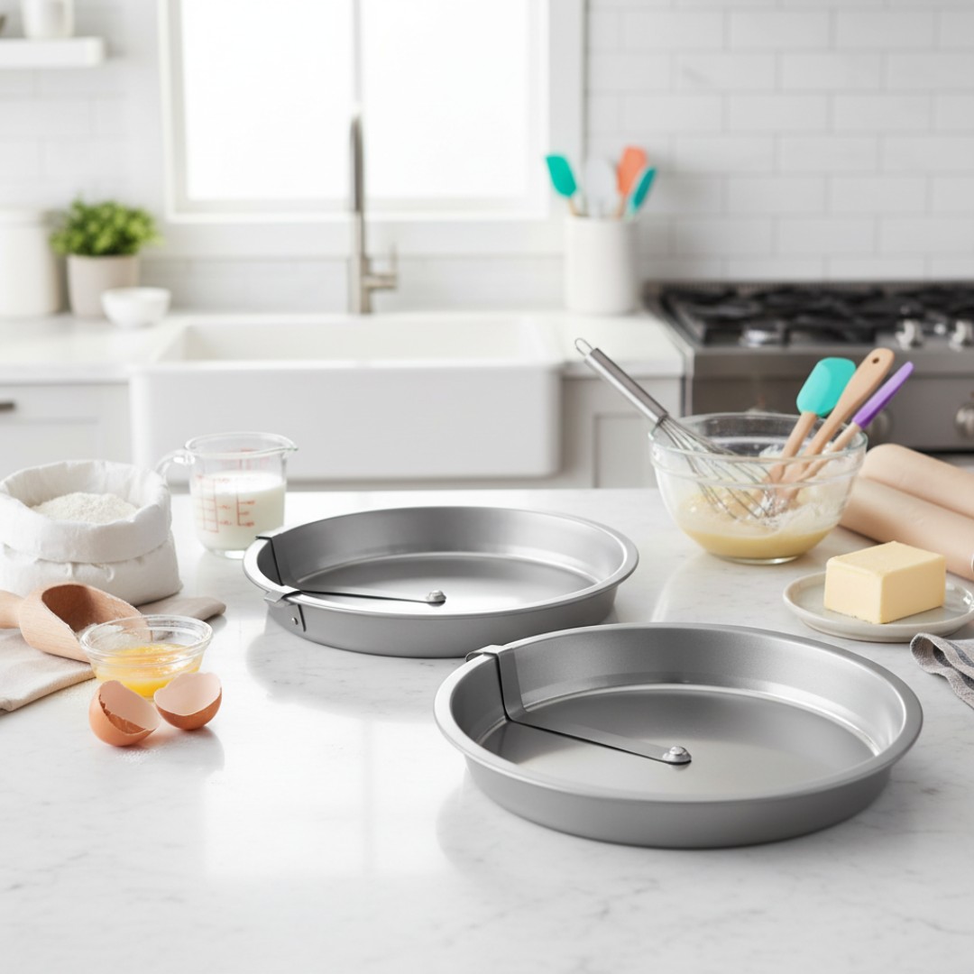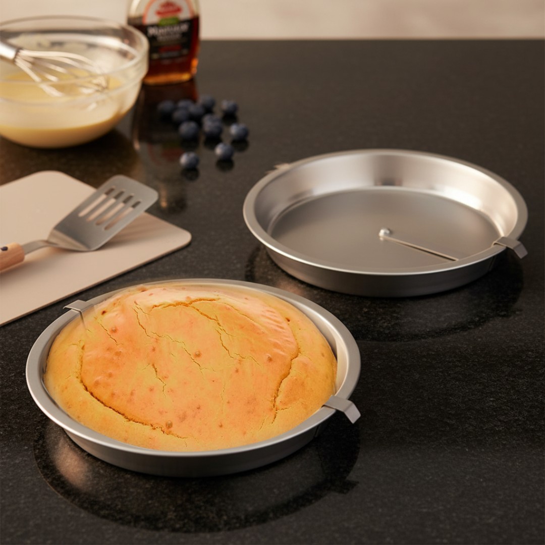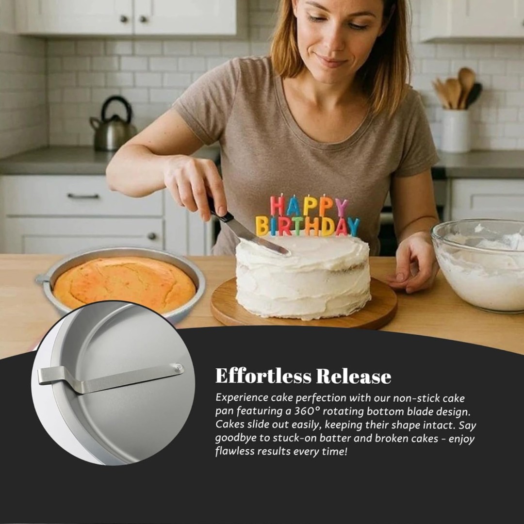 Adjustable Cake Slicer Pan Design: Built with an integrated rotating divider that allows you to cut cakes evenly while still inside the pan, ensuring perfectly portioned slices every time.