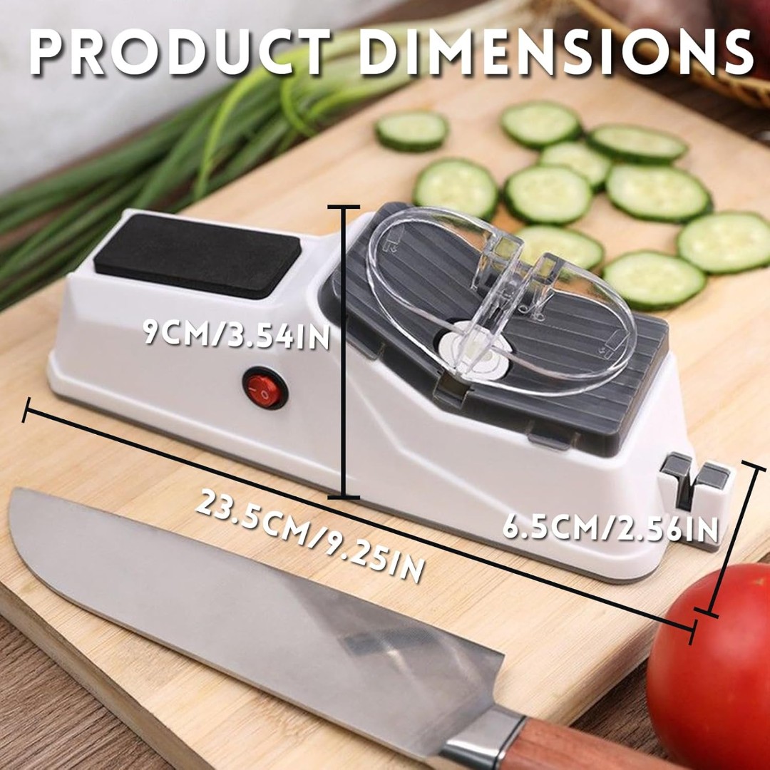 Electric Knife Sharpener: Designed to quickly restore sharp edges on kitchen knives, scissors, and cutting tools, helping maintain efficient and precise cutting performance.