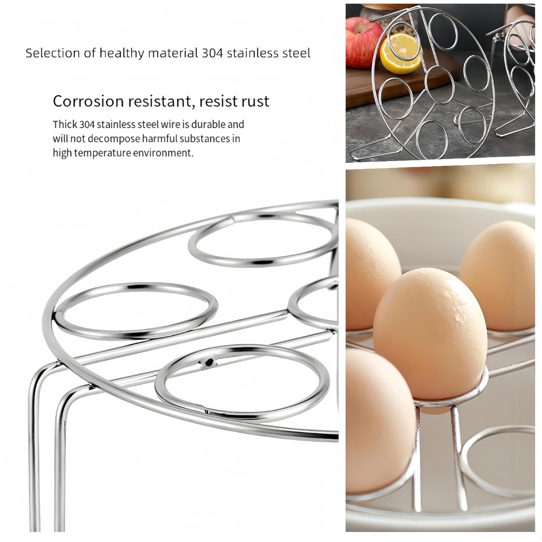 Multi-Functional Egg Steaming Rack: Designed to hold up to 7 eggs securely while steaming or boiling, making it easier to cook multiple eggs evenly in pots, pans, or pressure cookers.