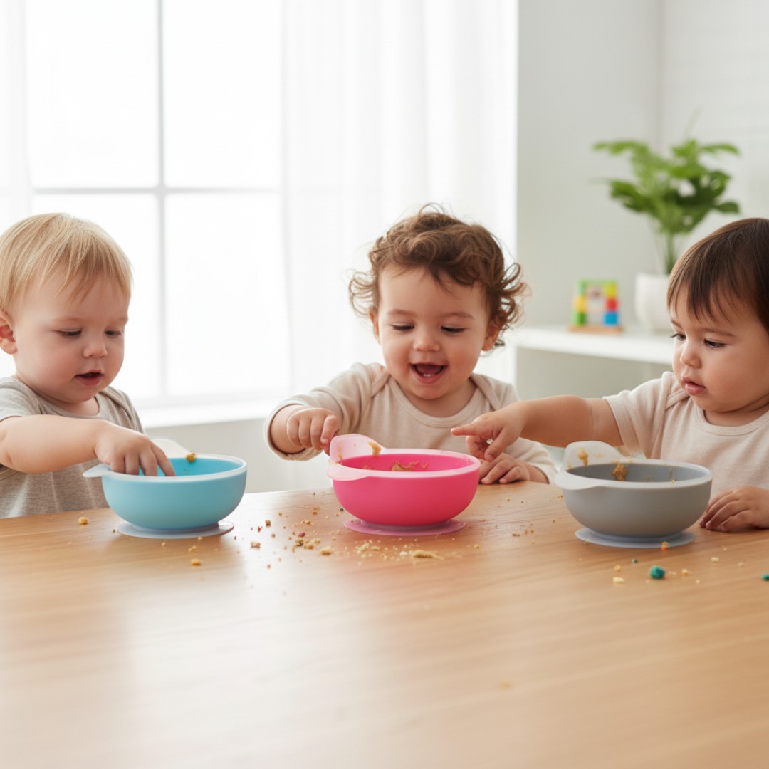 Baby Suction Feeding Bowl: Designed with a strong suction base that firmly attaches to tables and highchair trays, helping prevent spills and keeping the bowl securely in place while babies eat.