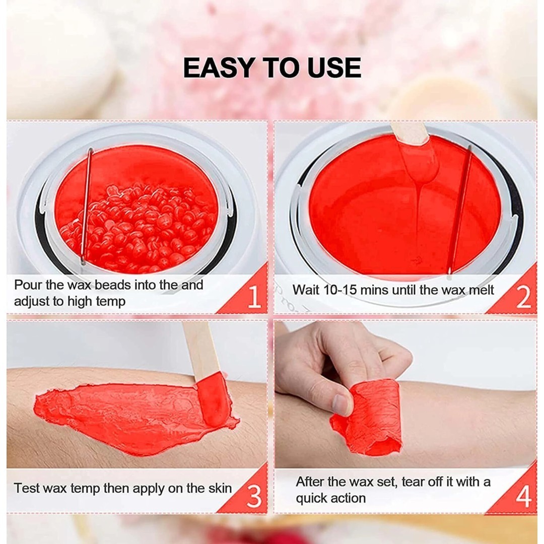 High-Performance Wax Beads: Premium pellet hot wax beads designed for effective hair removal, melting smoothly to provide strong grip on hair for clean and efficient results.