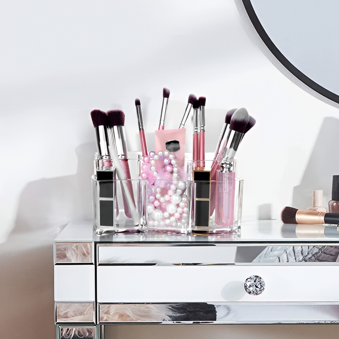 Multi-Compartment Organizer: Designed with multiple divided sections to neatly store makeup brushes, lipsticks, pencils, and beauty tools in one convenient place.