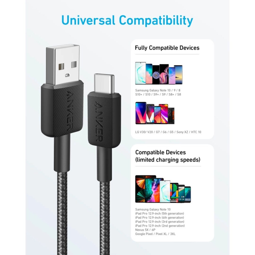 Durable Braided Design: Reinforced nylon braided cable provides superior durability and resistance to wear, withstanding up to 12,000 bends for long-term use.